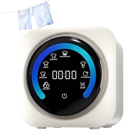 You’ll find this unit slipping into small, repeatable chores rather than large laundry days. In everyday use you tend to run it for quick refreshes — underwear, a handful of socks, or a single T‑shirt — frequently enough while you’re getting ready in the morning or winding down at night. Typical runs feel short: a brisk cycle for lightly worn items, a medium-length wash if things need a little extra agitation, and a longer or soaking cycle for items that have sat a bit longer. If you use the drying function, expect the overall time on the counter to stretch; humid afternoons or denser fabrics can make the dry phase noticeably longer.You’ll also notice minor, habitual interactions: topping up water, pausing to redistribute a few items, or leaving the lid slightly ajar afterward so things air out. These small behaviors shape how the appliance fits into a daily routine more than any single technical detail does.