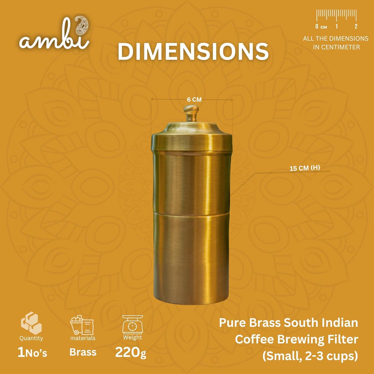 If your mornings demand ⁢a ‍strong, syrupy decoction⁣ without⁢ the⁤ fuss of electric machines, ‌reach for the⁣ Ambi​ Pure Brass Lead-Free‌ Traditional Filter Coffee Maker — a compact South Indian drip-style vessel sized for 2–3 cups. You load the upper chamber with grounds, pour hot water,‍ and let the slow drip extract ⁢a concentrated decoction you can mix with milk. With regular use you’ll notice⁣ the lead-free brass tones down metallic edges and the pressing disc plus⁣ lid help keep ​extraction and temperature steady,so your coffee stays ⁤consistent. It’s the kind of tool you ⁣bring out for quiet mornings or small get-togethers when authentic filter coffee is what you want, quickly ⁣and reliably.