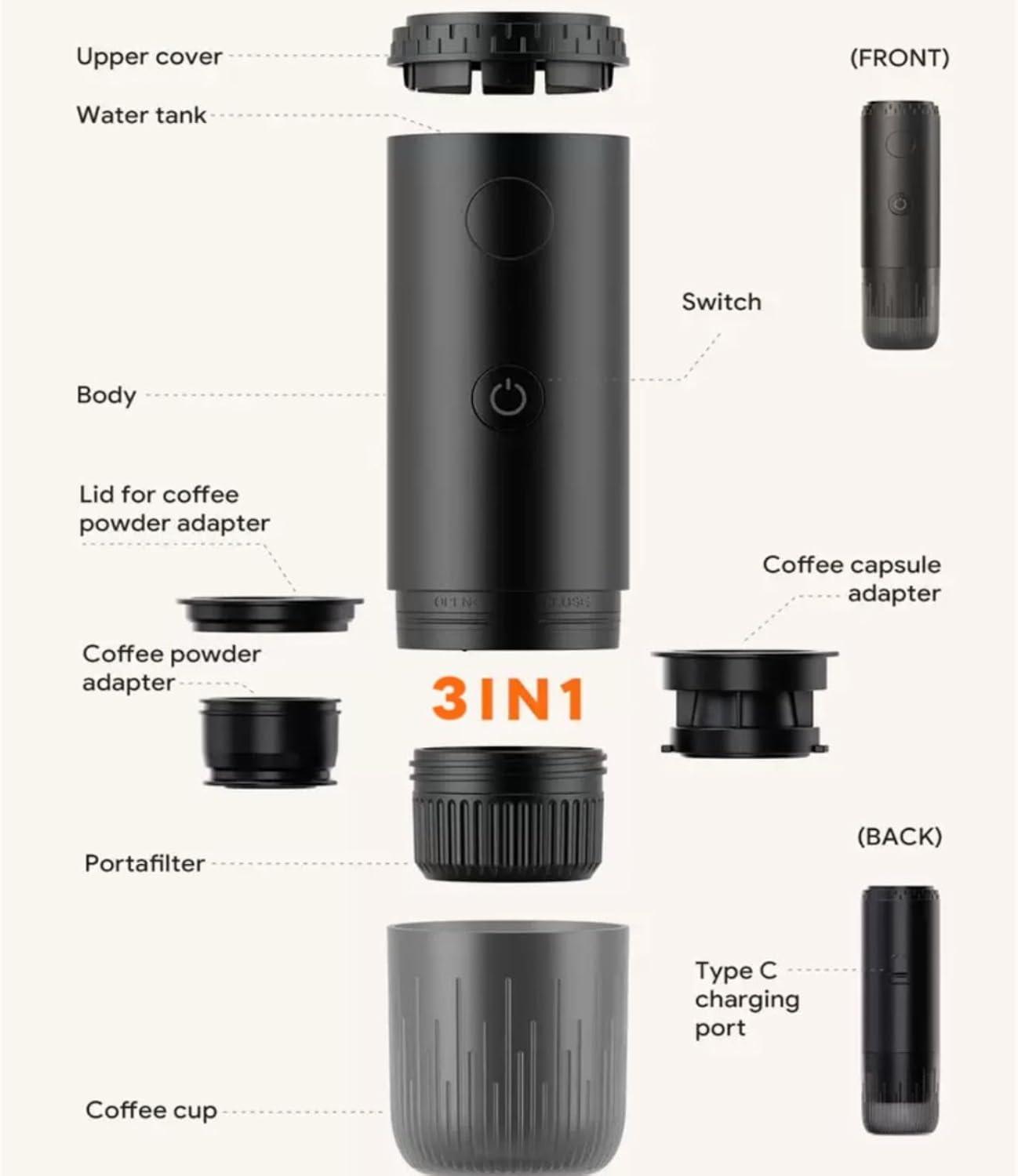 | 🔌 USB-C Powered & Self-Heating: No need for external heat sources-works with power banks, laptops, and car chargers. | 🥄 Single Button Operation: While simple,it offers limited customizable brewing settings,wich may not satisfy espresso purists. |