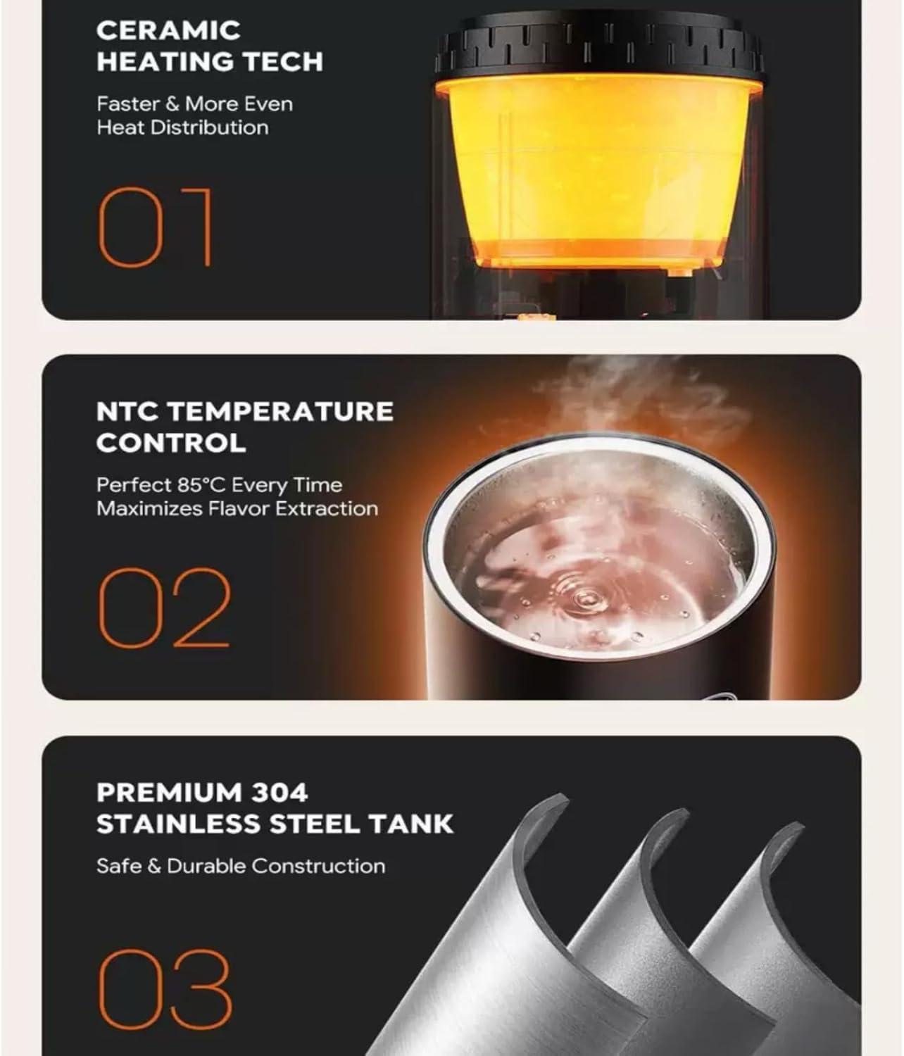 | Brewing Speed | Heating and extraction complete within minutes |