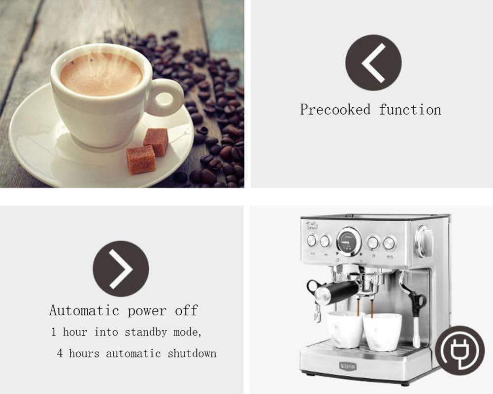 From the moment we unpacked this espresso maker, the first thing that caught our attention was its sleek stainless steel exterior. The high-quality material not only lends a modern and premium aesthetic to any kitchen or office space but also ensures outstanding durability. Unlike plastic models that can feel flimsy, the robust stainless steel body withstands daily use with ease and maintains its polished look over time. This solid construction also contributes to temperature stability during brewing, enhancing the overall coffee extraction process.