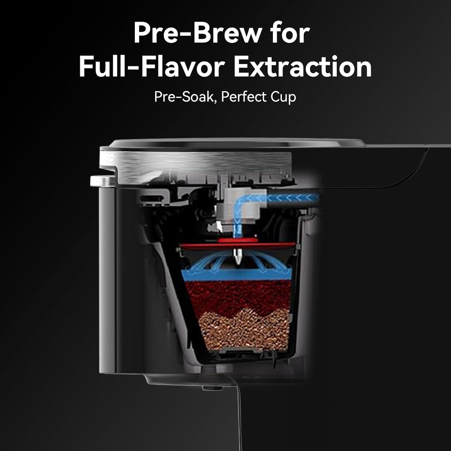 - Consistent quality: Pre-infusion ensures rich flavor at every size.