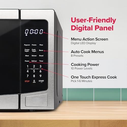 In terms of build quality, we appreciate the thoughtful attention to detail, reflecting in features like the soft-touch electronic control panel and the easily removable glass turntable. The control panel simplifies operation with convenient functions, including auto-cook menus and child safety locks, demonstrating practicality without sacrificing style. Additionally, the interior light serves a functional purpose, enabling us to check on our food without opening the door. With a powerful 1000-watt output and versatile 10 power levels, this microwave not only offers effective cooking capabilities but also stands out as a reliable appliance that fits seamlessly into our daily cooking routine.Check it out here!