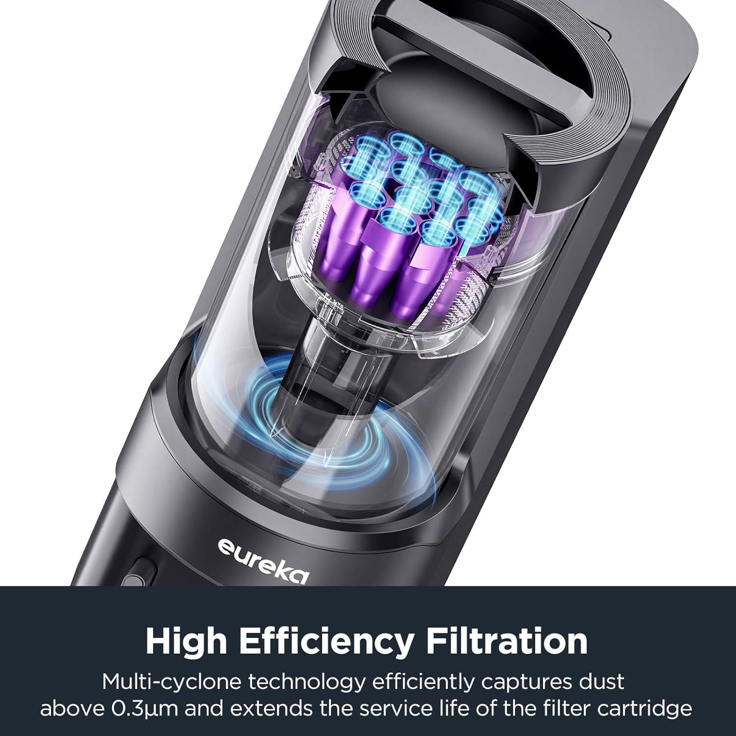 - Multi-cyclonic technology prolongs filter life and maintains consistent suction power.