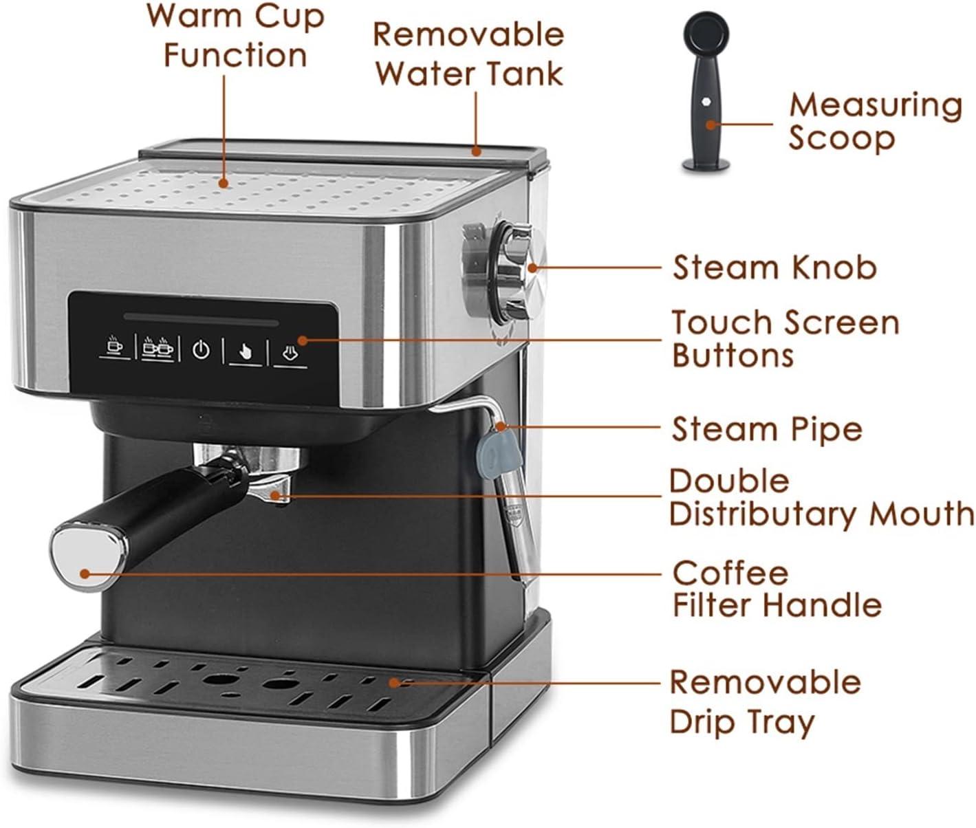 From the moment we unpacked this espresso coffee machine, its sleek and modern design caught our eye. The compact footprint fits perfectly on our kitchen countertop without consuming much space, which is a big plus for both small and spacious kitchens. Its intuitive layout, with clearly marked buttons and an integrated electric milk frother, simplifies the process of crafting café-quality drinks at home. The build quality feels sturdy yet lightweight enough to move when needed,blending functionality seamlessly with aesthetic appeal.