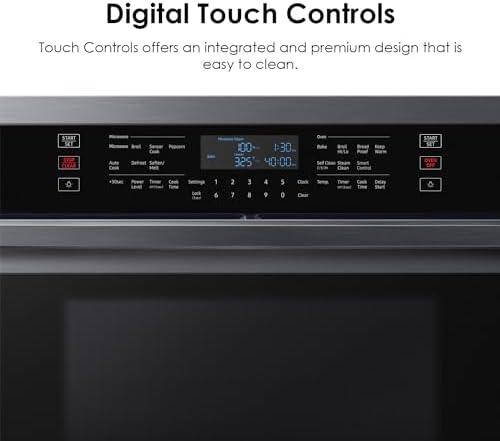 We were truly impressed with the digital touch controls featured in this electric wall oven and microwave combo.The interface is not only modern and elegant, but also remarkably intuitive, allowing us to easily navigate through various cooking functions. Cleaning is a breeze, thanks to the integrated and smooth design of the controls that complement the sleek black stainless steel exterior. With just a light touch, we could adjust temperature settings, choose cooking modes, and start our desired tasks without any hassle.