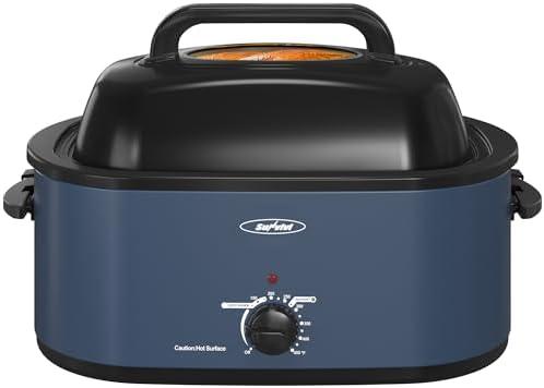 Our experience with this electric roaster has been overwhelmingly positive. The convenient visible lid design truly stands out, allowing us to monitor cooking progress without needing to open the oven.This feature minimizes the risk of burns from superheated steam while ensuring that our turkey remains juicy and flavorful by retaining heat and moisture throughout the cooking process. With a generous capacity of 26 quarts, it easily accommodates larger meals, making it perfect for family gatherings or holiday celebrations. The innovative warm and defrost functions are also game-changers, enabling us to seamlessly transition a frozen turkey to a beautifully roasted dish in just a few hours while keeping our servings at an ideal temperature.