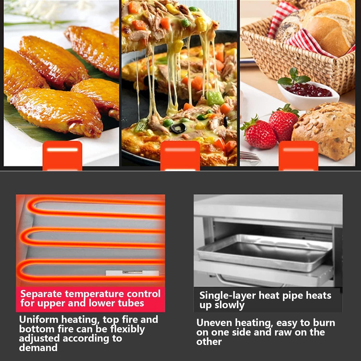 This unit impresses with its robust stainless steel construction and thoughtful design, making it a reliable fixture both in bustling commercial kitchens and cozy home setups. The precise temperature control featuring dual thermostats allows us to customize heat settings independently for the top and bottom, ensuring perfectly baked results every time. What truly sets it apart is the 360° even heating provided by multiple U-shaped heating tubes, which not only guarantees balanced cooking but also eliminates the need for preheating, speeding up meal prep effortlessly.