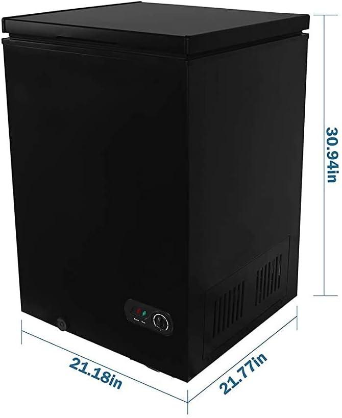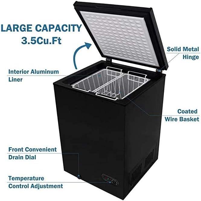 The freezer offers a compact yet efficient storage capacity of 3.5 cubic feet, ideal for small apartments or limited spaces. its design cleverly maximizes usable space without overwhelming our kitchen corners. The removable baskets come in handy, allowing us to easily separate different types of food items, from frozen veggies to meats, making accessibility and organization a breeze. With the chest-style layout,we enjoy the versatility to store bulkier items flat or stacked with minimal hassle.