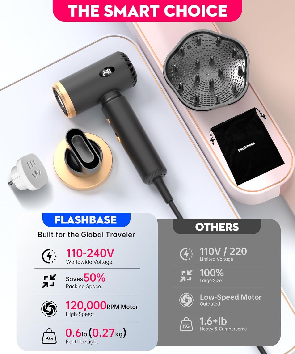 Flashbase Travel Hair Dryer: fits your carry-on and shelf