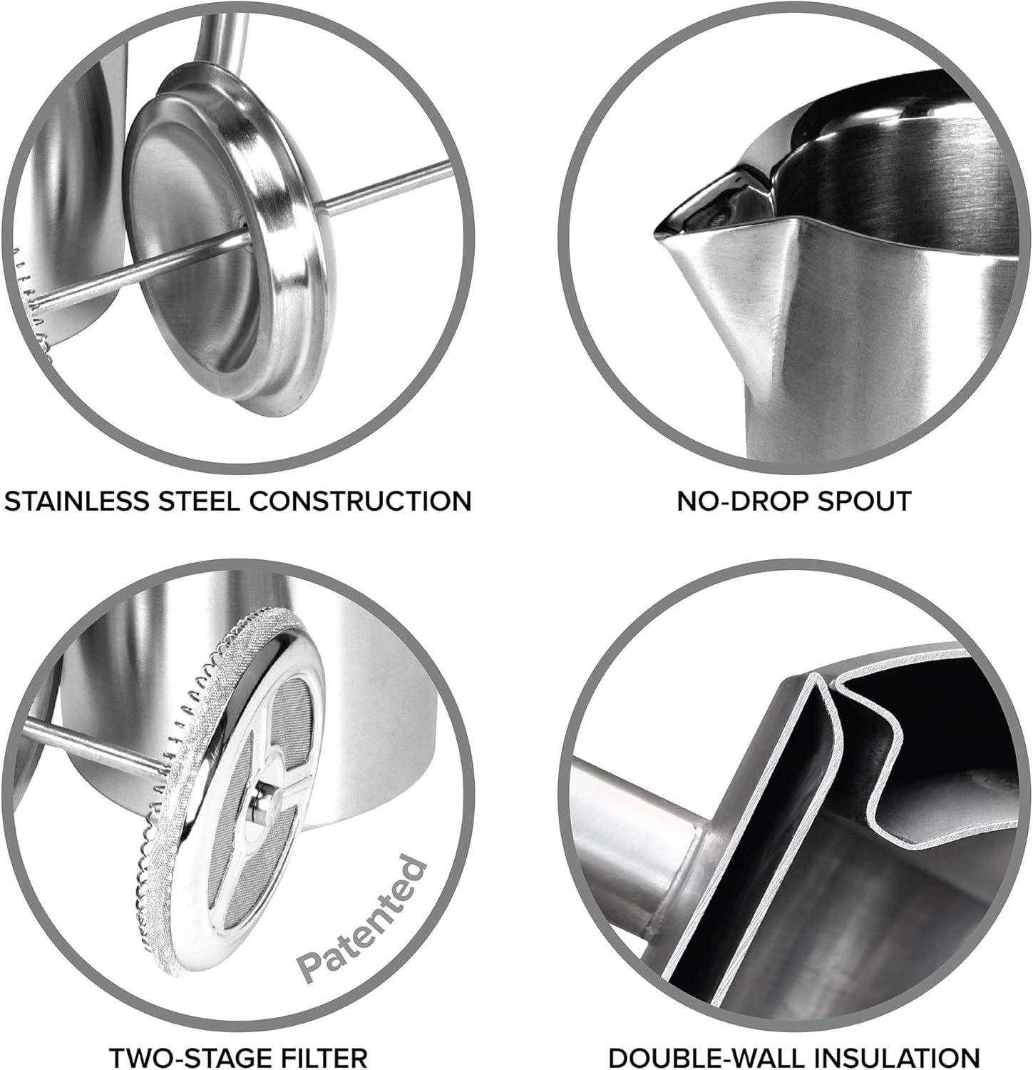 - Extremely durable, long-lived construction. the 18/10 double‑wall stainless steel feels “built like a tank” — you’re replacing fragile glass presses with something that will survive bumps, drops and daily use (backed by a multi‑year warranty).