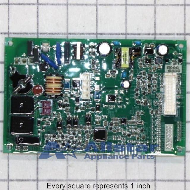 When you swing the dishwasher door open and look straight at the control board, your eye is drawn to the small, busy patch of circuitry tucked behind the inner panel. You notice wiring bundles routed into plastic sockets, a handful of larger relays and capacitors that interrupt the grid of resistors and chips, and the occasional pad of adhesive or foam holding things steady — little signs of how the board sits in daily use. A printed label or sticker on the board tends to stand out first; it’s were the row of letters and numbers lives, and it’s often the clearest thing to read without leaning in or grabbing a flashlight.