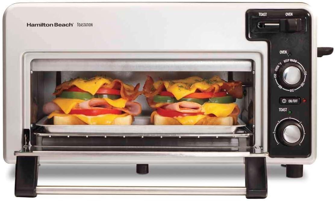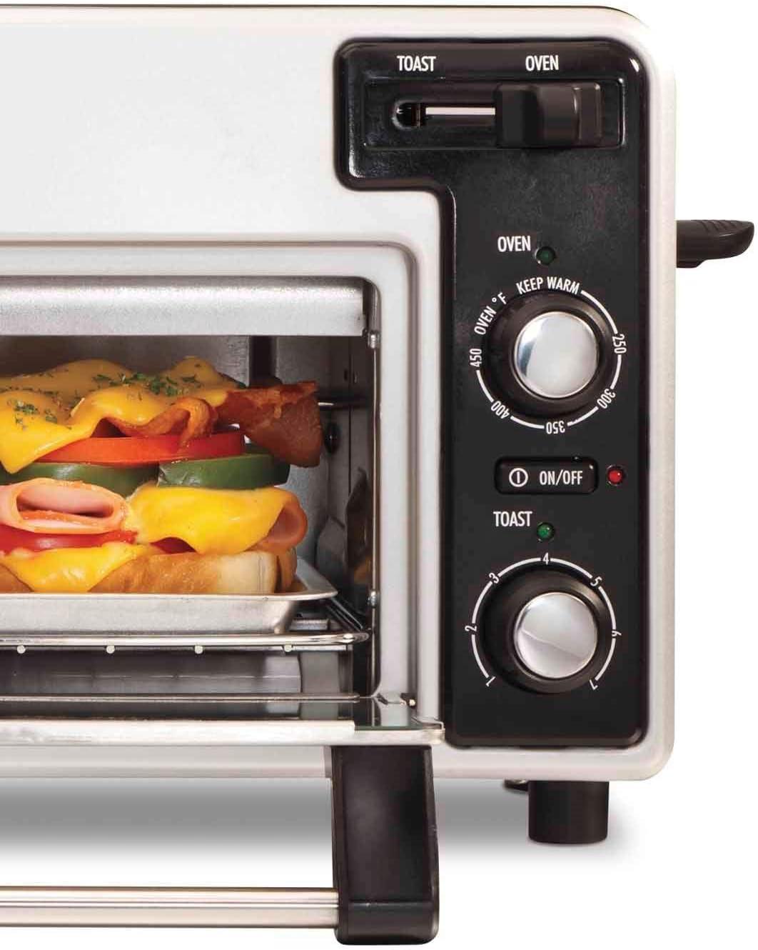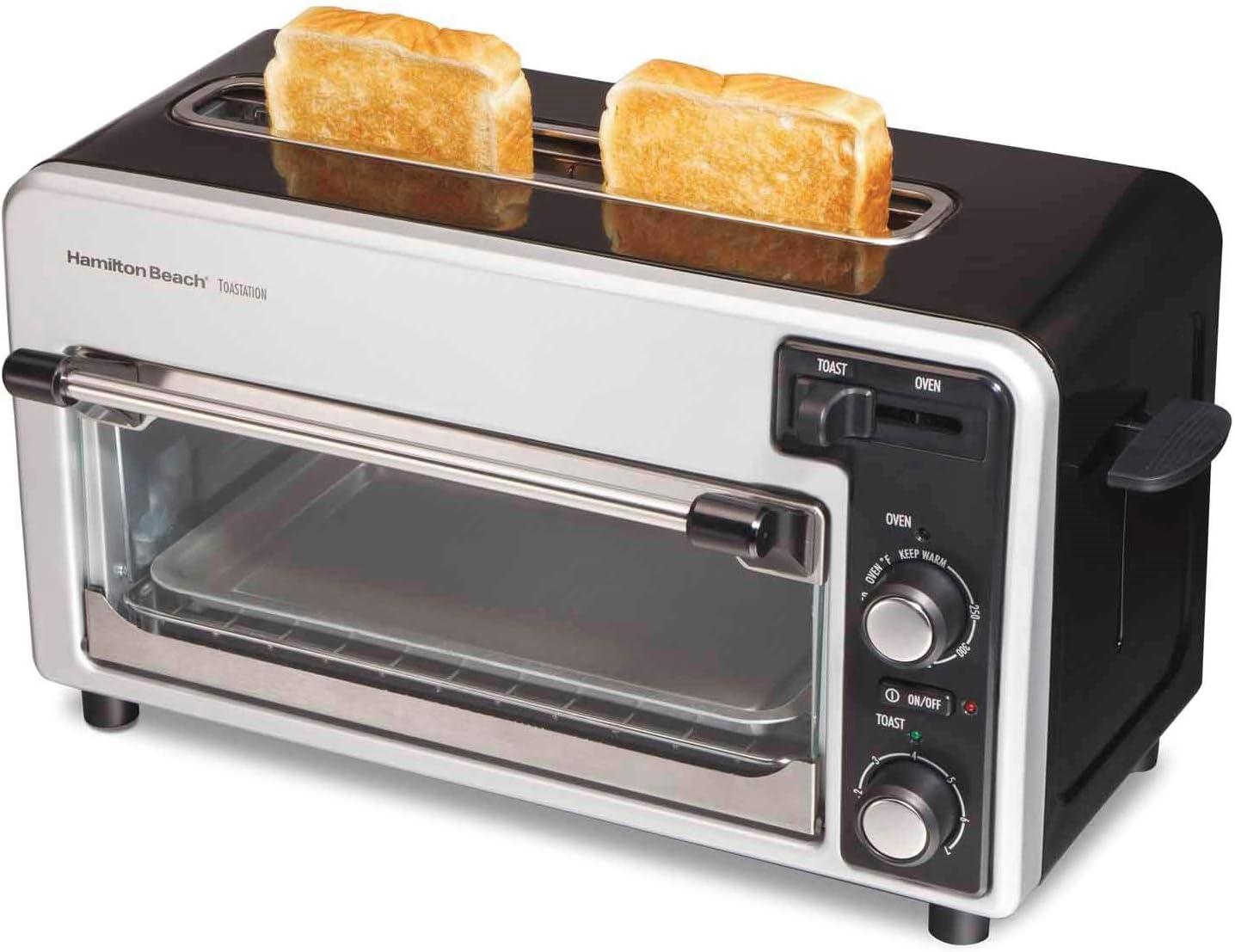 After living with the Hamilton Beach Toastation Oven with 2 Slice Toaster Combo, Ideal for Pizza, Chicken Nuggets, Fries and More, Black (22720), you notice how small habits form around it. in daily routines it takes its spot on the counter beside the coffee maker and a jar of utensils; over time you reach for its controls without thinking, wipe away crumbs more often, and watch the finish pick up the faint smudges of repeated use. It quietly shapes mornings and late-night snacks alike — sometimes nudged aside, sometimes front and center as meals are warmed and quick bites are finished. It settles into routine and stays.