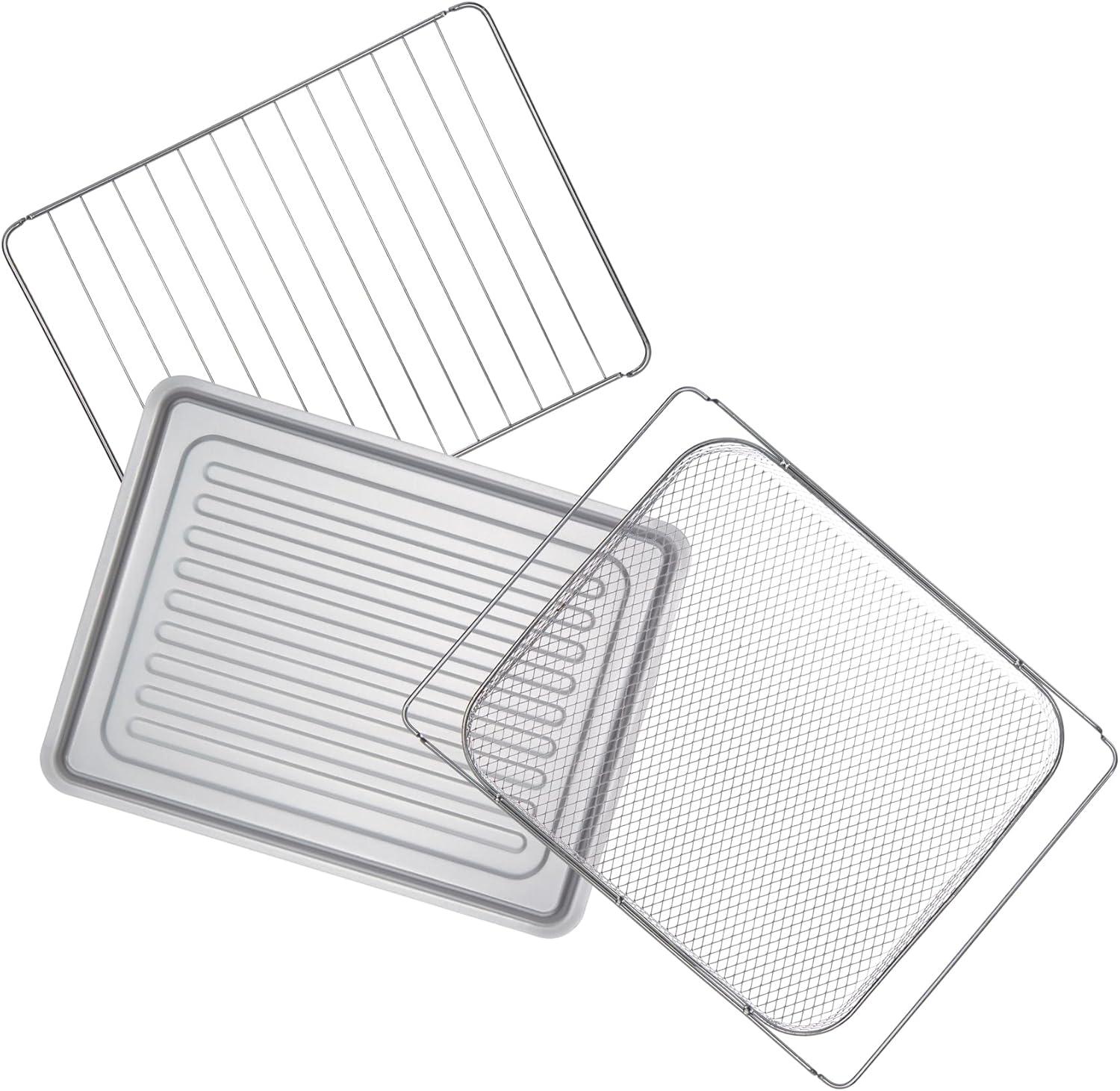 In the morning you tend to grab the front dial first and let your hands find the familiar click of the mode selector. For quick toast you turn and watch the indicator settle where you expect, then nudge the timer toward a short span while you butter the first slice; for a heartier start — frozen waffles or a small batch of hash browns — your movements include one more twist to the air-fry setting and a glance at the timer before you step away. Mid-cook checks are part of the rhythm: you open the door to peek, slide the rack a notch if the pan looks too close to the element, and the crumb tray is a brief afterthought you clear between energetic breakfasts and the quieter moments when you reheat coffee.