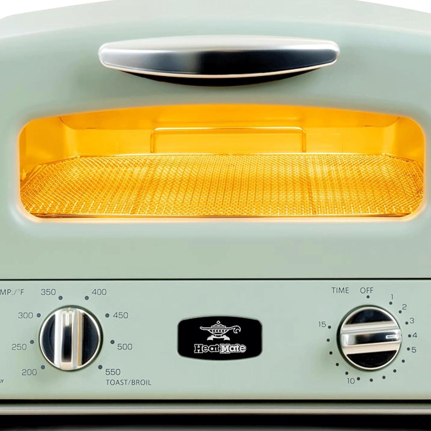 You lift the HeatMate Graphite Heating technology Pop-Up Toaster in olive green out of the box and set it down; its weight feels pleasantly solid without being bulky. Your palm picks up the cool, slightly textured metal and the rounded profile looks visually balanced against the backsplash, not flashy but quietly present. The control knob clicks with a short, confident travel and, the moment you turn it on, a fast hiss and the faint glow of the heating element register — small sounds and subtle lights that tell you it’s awake before anything actually pops.