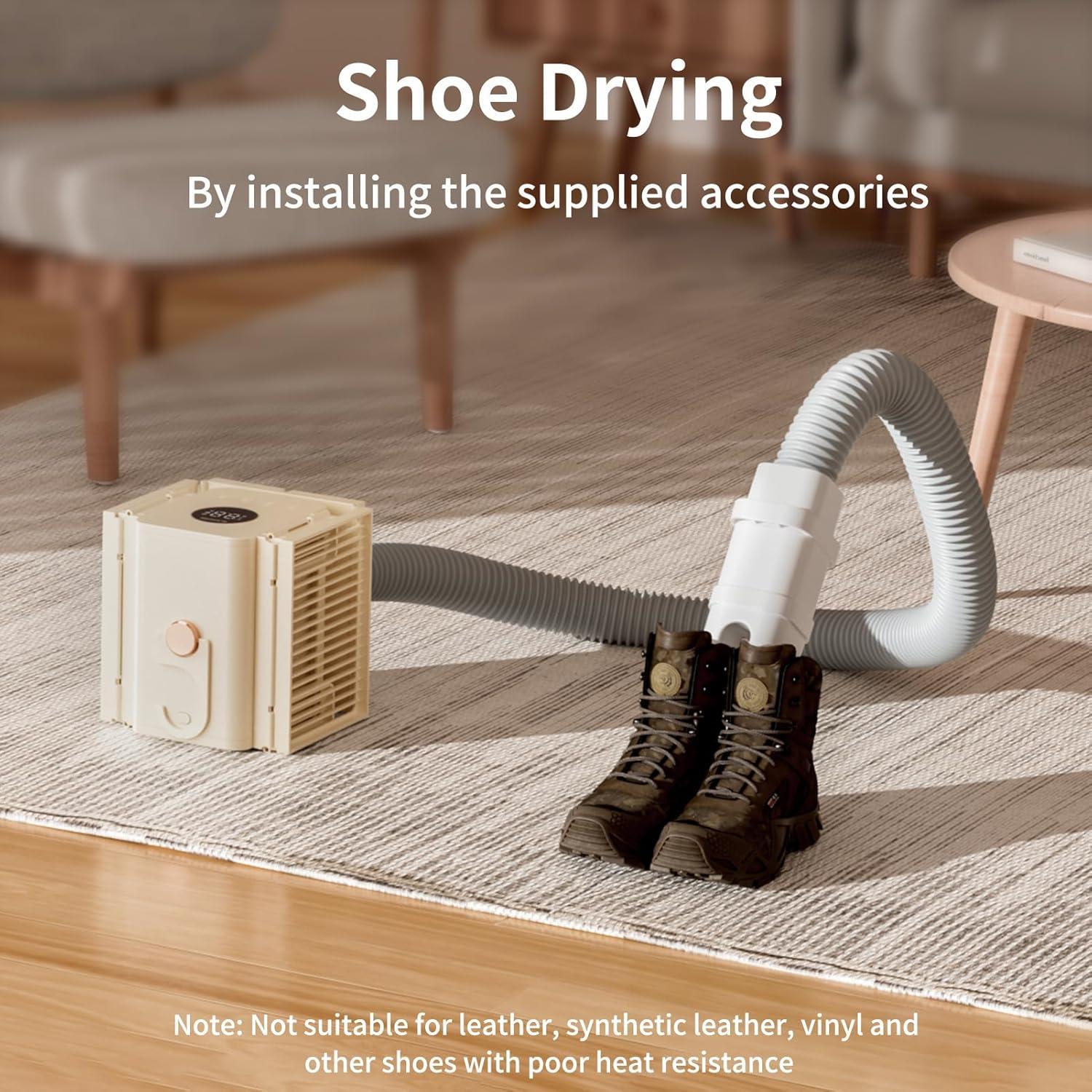 The drying modes provide versatility tailored to fabric needs. In warm air mode (40-50 ℃), delicate wool and silk are treated gently, while hot air mode (55-65 ℃) swiftly tackles everyday cottons and synthetics. an upgraded 850W motor powers 360-degree airflow for fast and even drying, and temperature protection safeguards our garments. The customizable timer and ultra-quiet night mode ensure versatility, allowing us to dry clothes at our convenience without disruption. Added extras, like the warming hose for shoes and quilts, expand practical uses beyond just everyday wear.