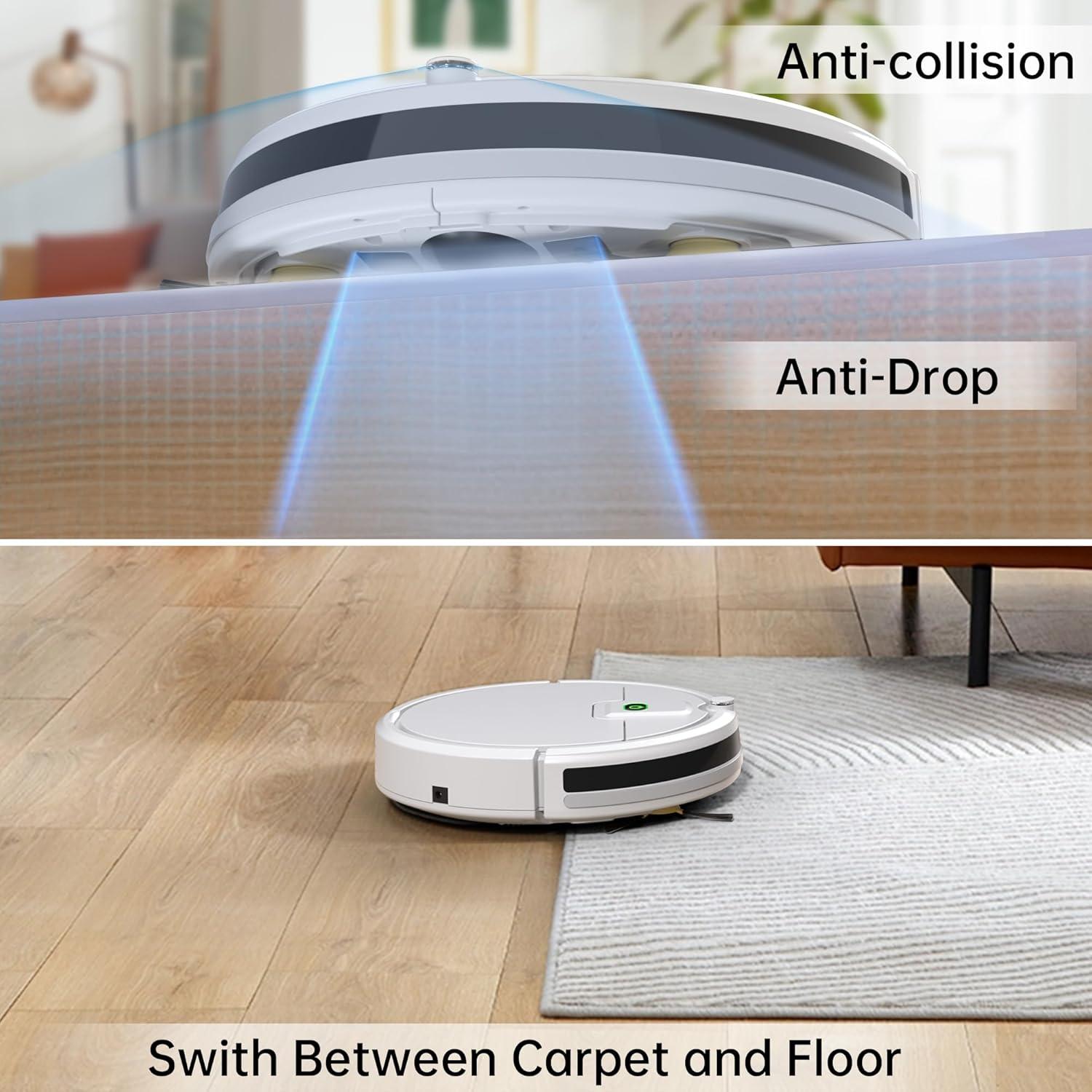 From our testing, this robot vacuum performs exceptionally well across various surfaces, especially on hardwood floors and low-pile carpets. Its 2900Pa ultra-powerful suction effortlessly lifts dust, dirt, and pet hair without leaving traces behind.The slim 2.99-inch design allows it to glide under furniture and hard-to-reach spots where pet hair tends to accumulate. It maneuvers smoothly around obstacles and edges with smart navigation,avoiding falls or collisions. While it excels on hard floors and low-pile carpet, it’s important to note that thick rugs or high-pile carpets are not recommended, as the vacuum’s wheels and suction are optimized for flatter surfaces.