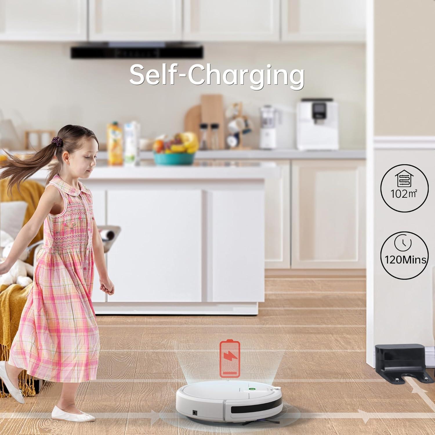 | Long Runtime & Automatic Self-Charging: runs up to 120 minutes and returns to dock automatically,letting us set-and-forget the clean. | Charging Dock Placement: Needs a clear, open corner for optimal docking, which might be an extra setup consideration in smaller rooms. |