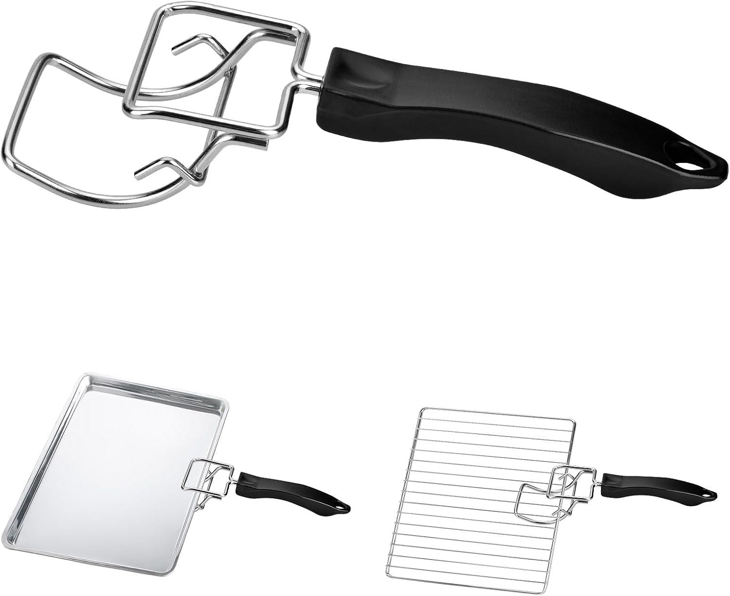 | Strong Metal Grips | Securely lifts trays and grills without slipping |