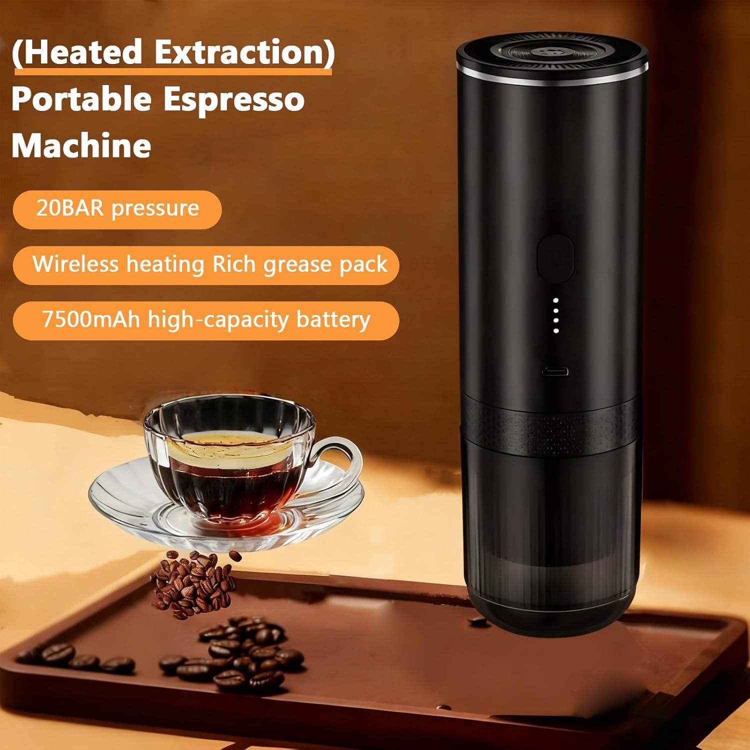 After a few weeks in the kitchen rhythm,the Irishom Portable Coffee Maker Grind Coffee and Capsules 2 in 1 Wireless Heating Coffee Machine with 20BAR Pressure Rechargeable for Home Outdoor Travel Office (Black) stops announcing itself and becomes one more presence on the counter. Its black surface picks up fingerprints and the occasional tiny scuff as it’s moved, and the morning gestures around it — filling, pressing, a quick wipe — fold into familiar motions.It shares shelf space with mugs and a jar of teaspoons, showing up in short, ordinary pauses between tasks. Left to its small, steady work, it simply settles into routine.