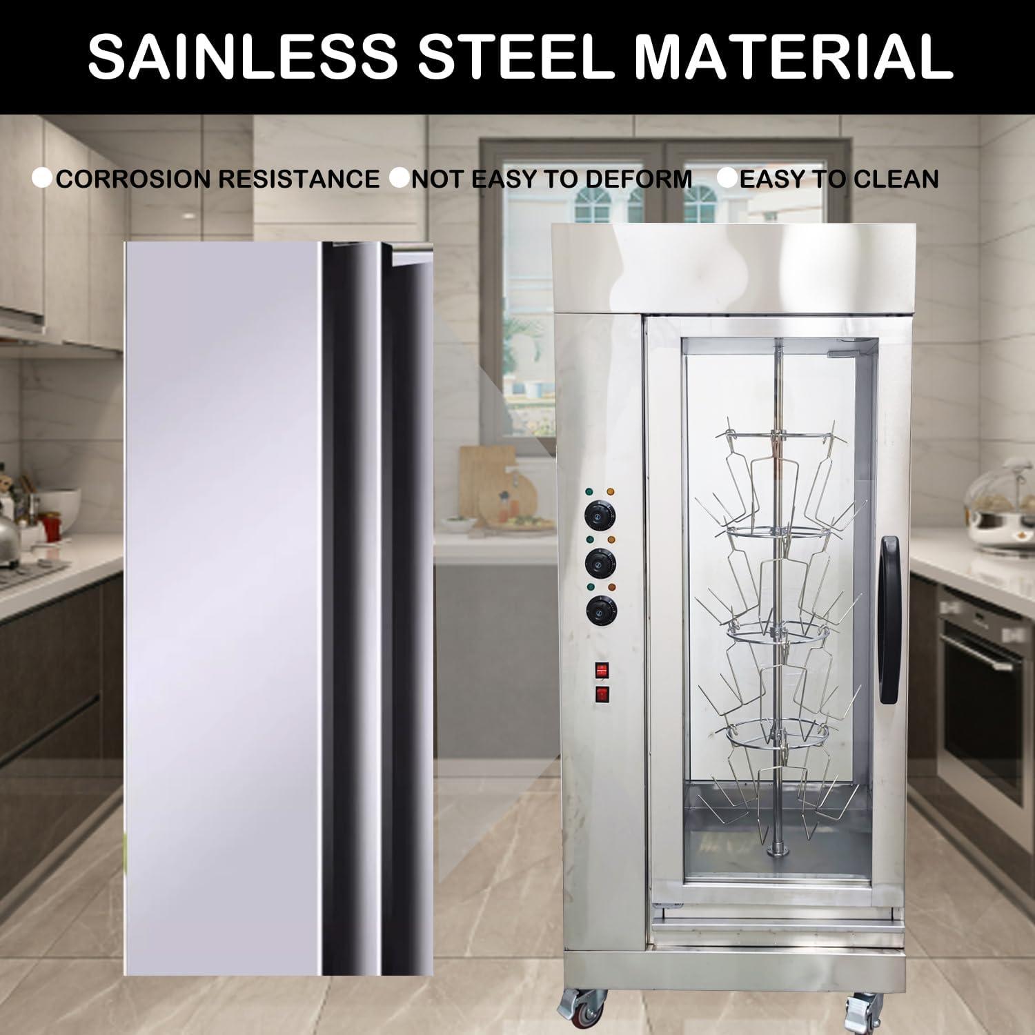 This rotisserie oven impresses us with its robust stainless steel construction, delivering both durability and a sleek, professional look that complements any modern kitchen setup. The fully sealed body prevents any leakage of food residue, making it not only hygienic but also incredibly easy to clean after each use. We appreciate the dual-sided, double-layered high-temperature glass panels which offer crystal-clear viewing and are explosion-proof, giving us confidence and convenience while monitoring the cooking progress without needing to open the door.
