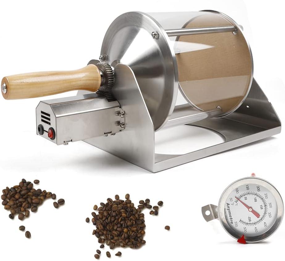 We found this roaster to be an excellent tool for anyone passionate about home roasting. Its sturdy stainless steel and quartz glass construction gave us confidence in its durability while allowing us to monitor the roasting process closely thanks to the transparent drum. The built-in metallic thermometer helped us maintain precise temperature control, ensuring that each batch of beans developed a rich, nuanced flavor without risk of burning. the steady 30 rpm rotation maintained by the pure copper motor evenly toasted the beans, and the gentle crackling sounds during roasting added to the immersive experience.The compact design, along with its stable, wide base, made it practical for use on our kitchen stovetop, although it requires gas heat rather than electric induction.