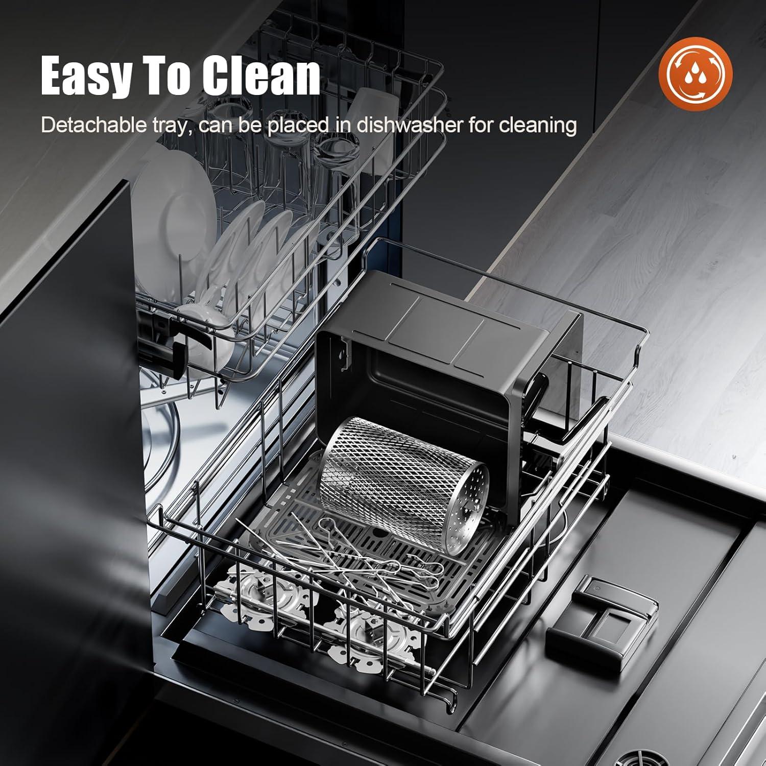 | Intuitive LED Touchscreen & Timer: Easy-to-use digital interface with a 24-hour timer and an auto shut-off adds safety and convenience to our cooking process. | Cleaning the Rotisserie Kit: While the removable trays and crumb drawer are dishwasher-safe, the rotisserie components require more careful hand-washing to maintain longevity. |