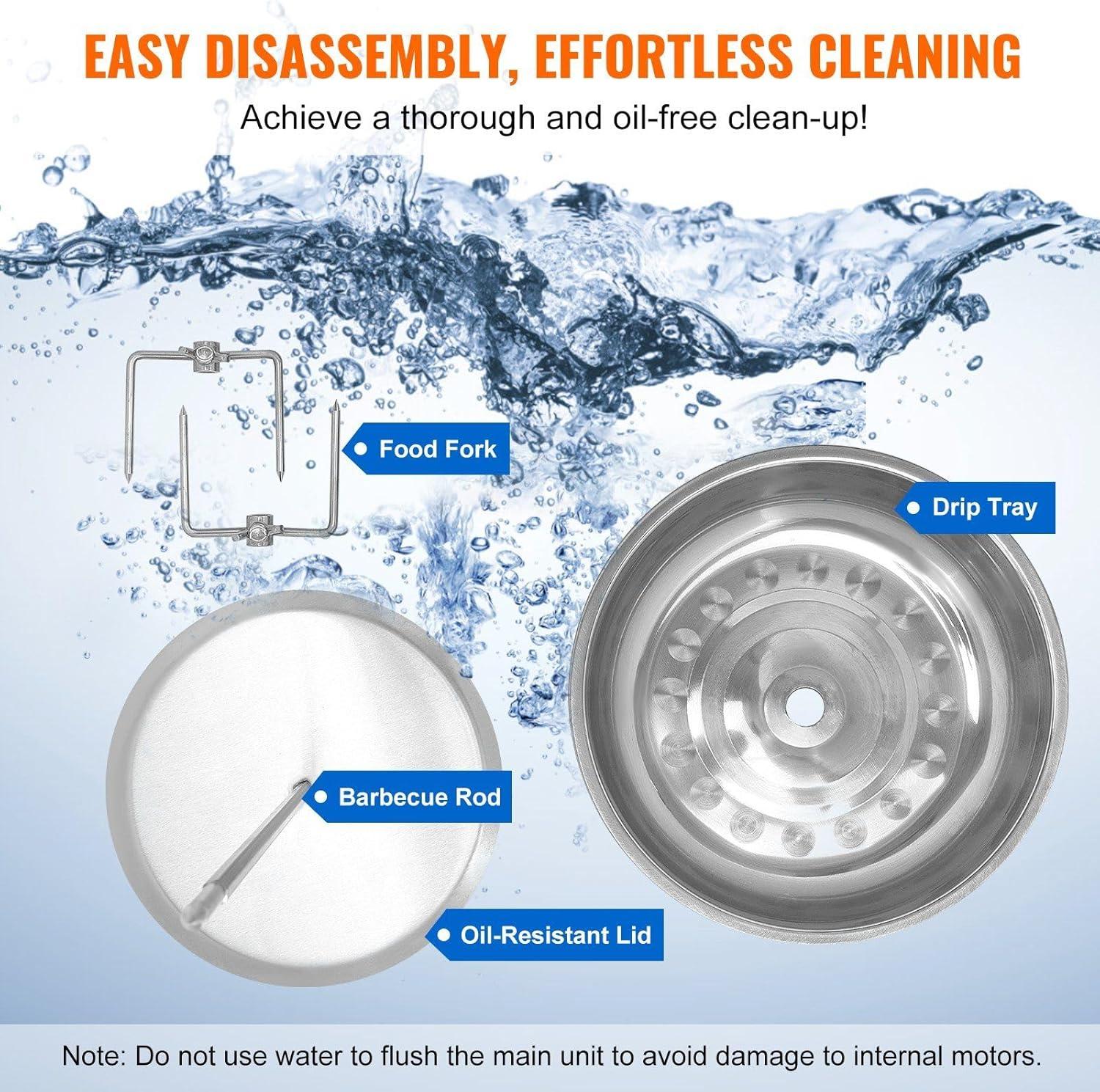 Crafted with premium 304 stainless steel,this machine merges durability and style.The corrosion-resistant surface is not only sleek but also remarkably easy to clean, requiring no special maintenance to keep it looking fresh. Its compact, lightweight frame-just 13.7 lbs-makes it highly portable, ideal for everything from home kitchens to outdoor parties and even small restaurants. The 360° rotational design driven by a sturdy copper wire motor ensures even heat distribution, resulting in deliciously cooked shawarma every time. A thoughtfully included oil shield, drip tray, and barbecue rod are all detachable, streamlining cleanup without compromising performance.
