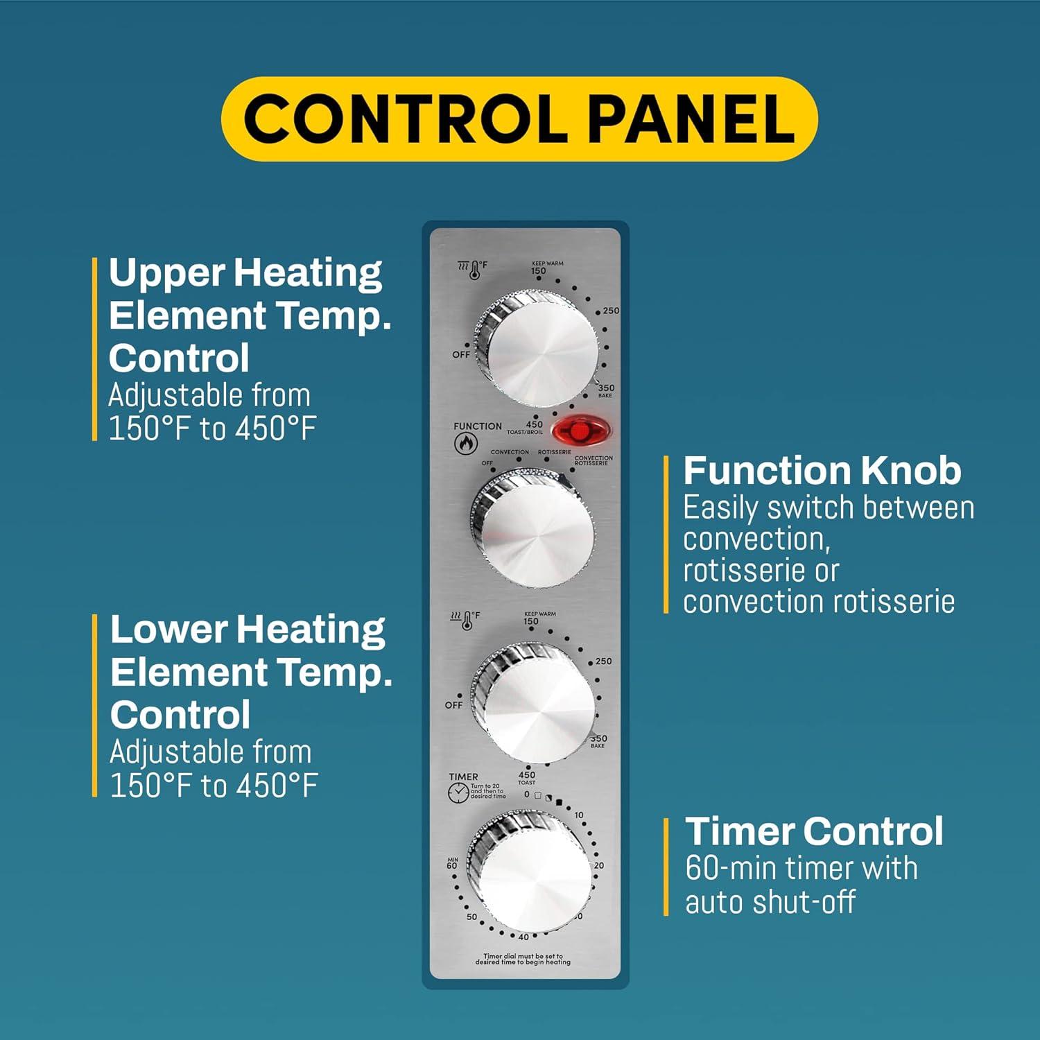 | 4 Independent Control Knobs | Custom heat settings for top & bottom elements |