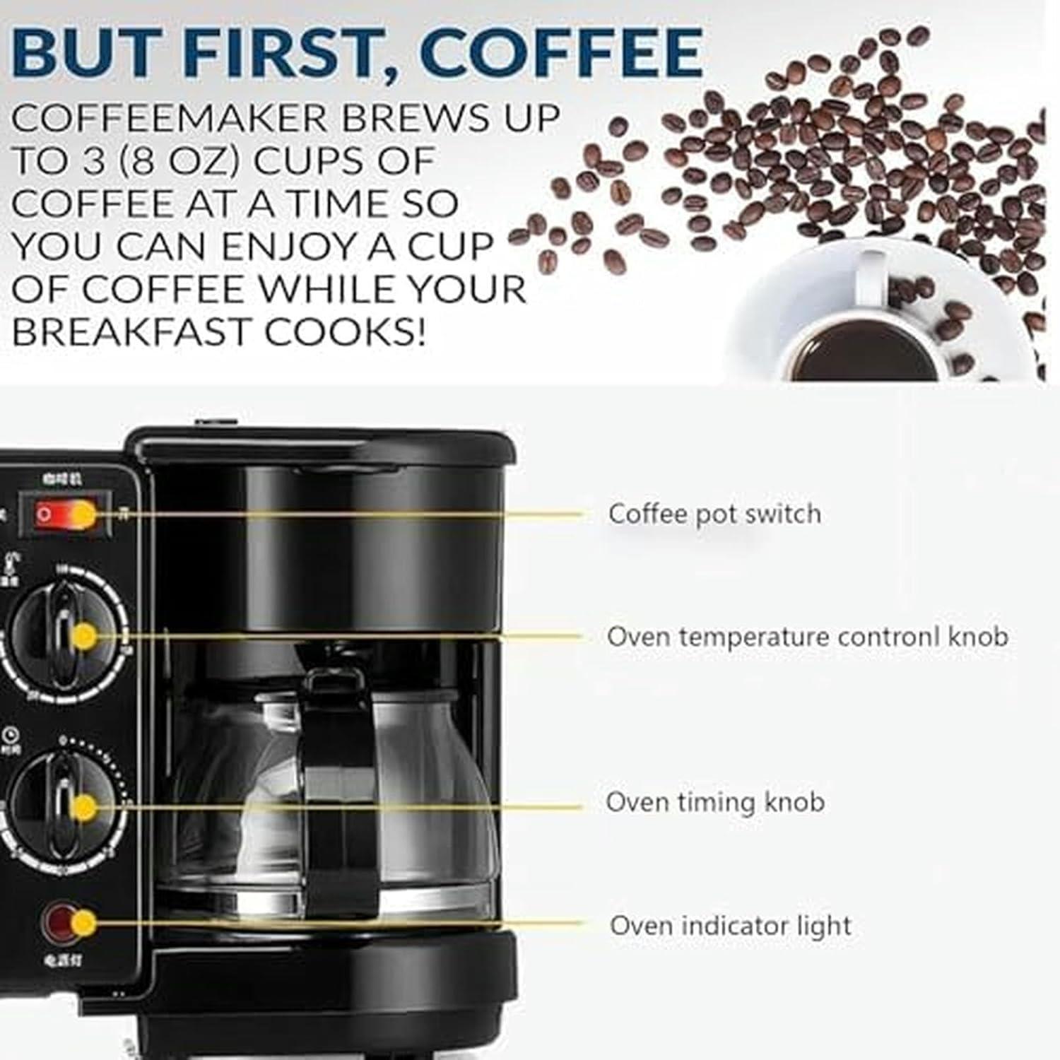 | Space-Saving Marvel: Combines coffee maker,griddle,and toaster oven in one compact design that fits perfectly on small countertops. | Learning Curve: Coordinating all three cooking zones at once can take a little practice to get timing just right. |