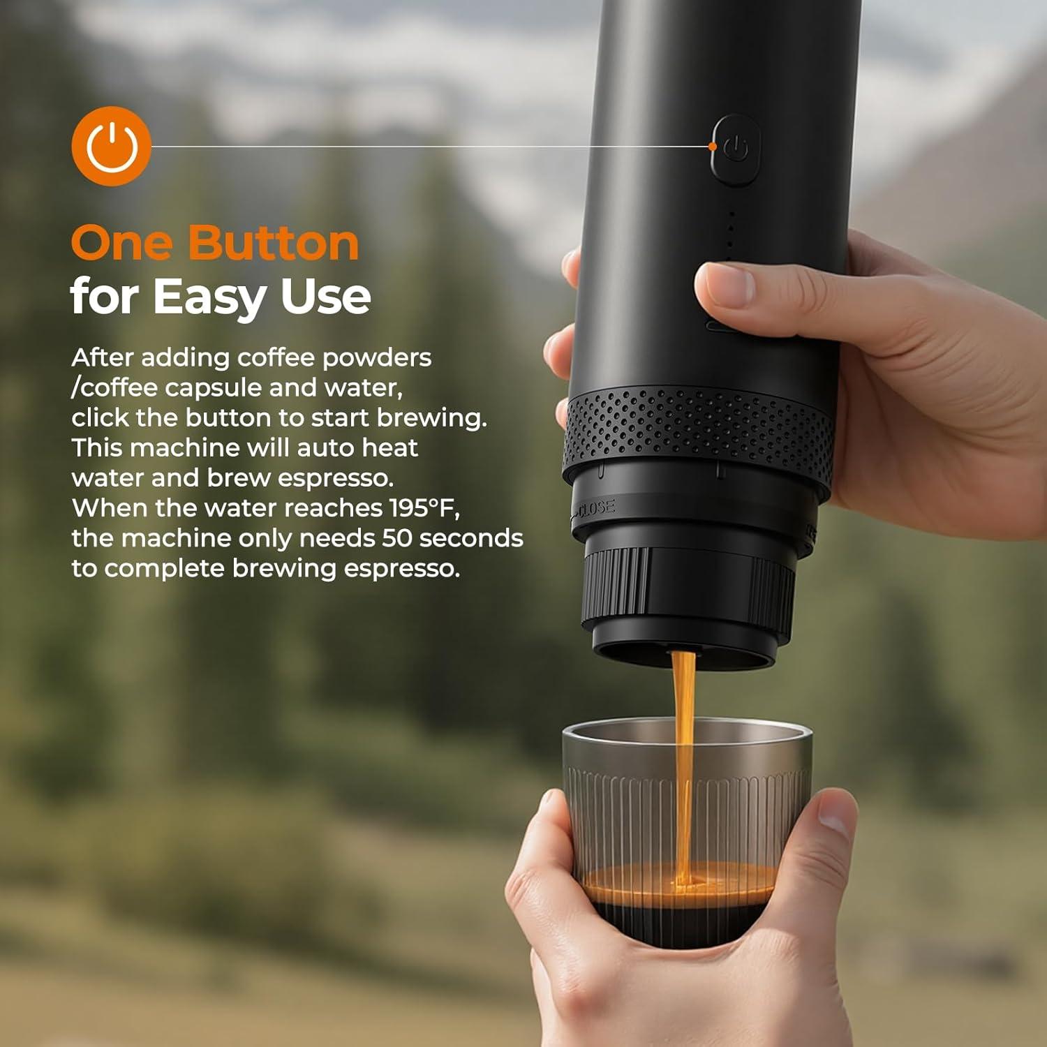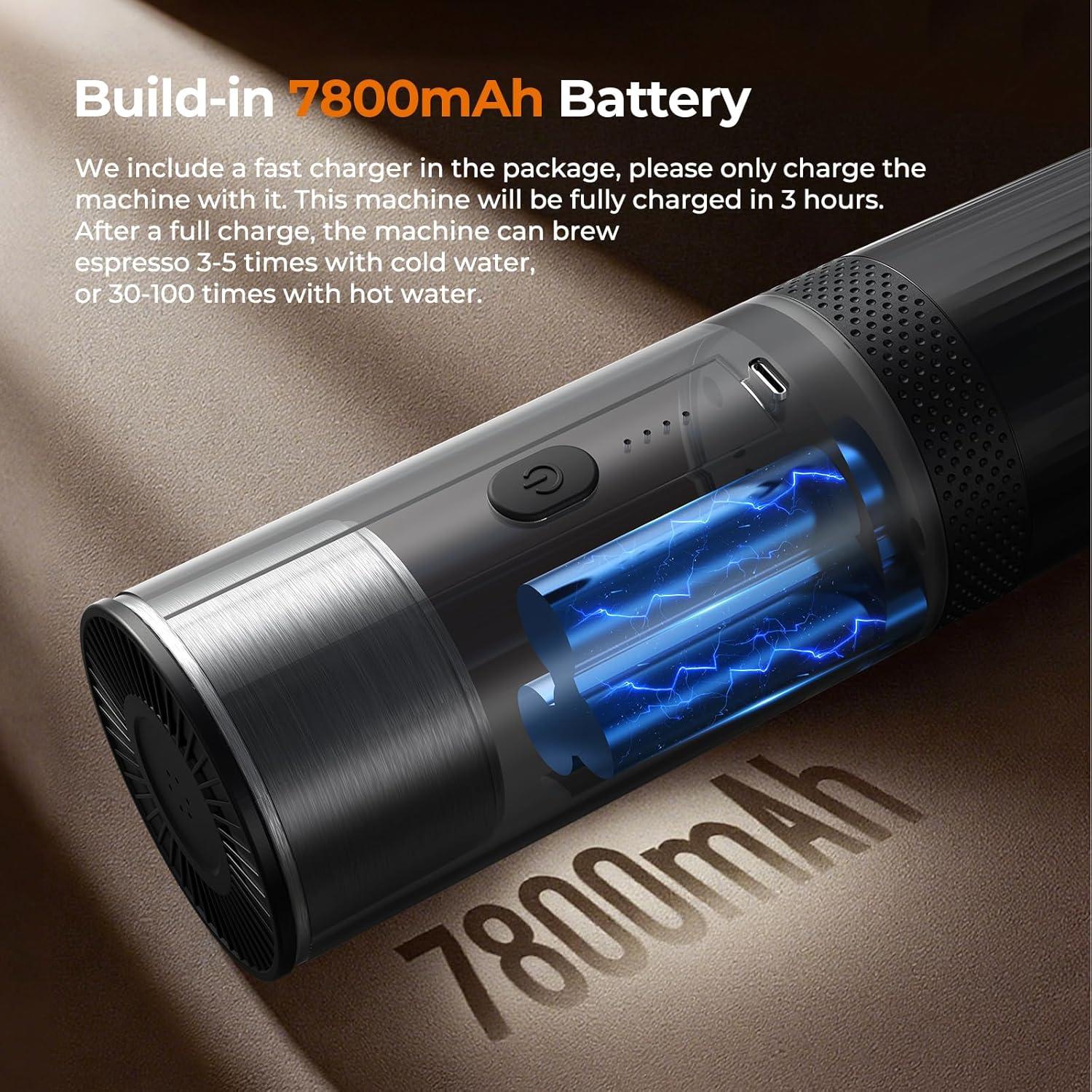 🔋 Powerful 7800mAh battery: Multiple shots on a single charge, perfect for multi-day trips 🛠️ Optimal shots depend on grind & capsule quality: Requires some coffee know-how