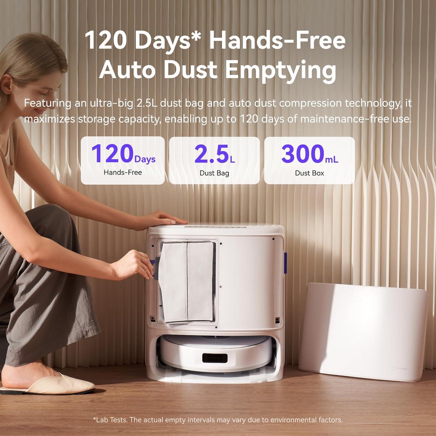 | Self-Emptying Dustbin | Stores debris for up to 120 days | Hands-free dirt disposal; no clogging or odors |