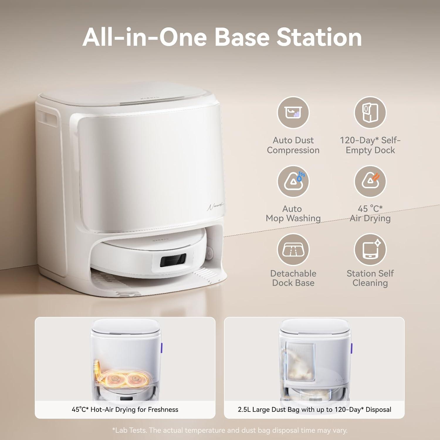 Navigation and mapping capabilities really set this model apart. Combining LiDAR scanning with 3D obstacle avoidance, it maps entire homes accurately and adapts on the fly, avoiding furniture and clutter with smooth efficiency.The smart app offers comprehensive control where you can customize schedules, mop intensity, suction power, and even create no-go zones to protect delicate rugs or spaces. Plus, the self-cleaning base station that washes and dries mop pads automatically, and empties debris into a large dust bag capable of holding up to 120 days’ worth of dirt, truly elevates the user experience to a hassle-free level.