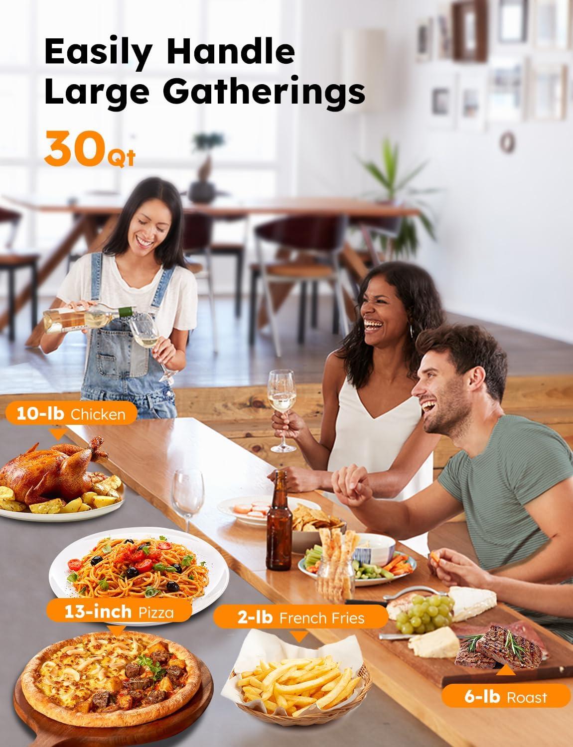 | Spacious 30-quart interior Large enough to cook two 13-inch pizzas or a 10-lb chicken, perfect for families or gatherings. |