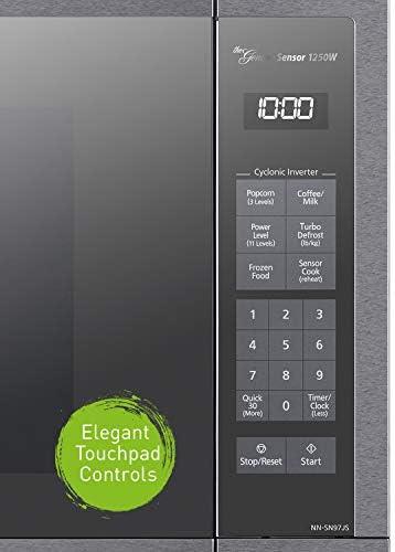 One of the standout features we appreciate is the Inverter Technology combined with Turbo Defrost. This patented system generates a seamless, consistent stream of power, ensuring that our meals are cooked evenly without the risk of overcooking.The advanced Turbo Defrost function significantly reduces the time it takes to defrost frozen items, making meal planning quicker and more convenient. With a powerful 1250 Watts and a 2.2-cubic-foot capacity, this microwave maximizes cooking efficiency while preserving the flavor and nutrients of our favorite foods through its innovative Cyclonic Wave technology.