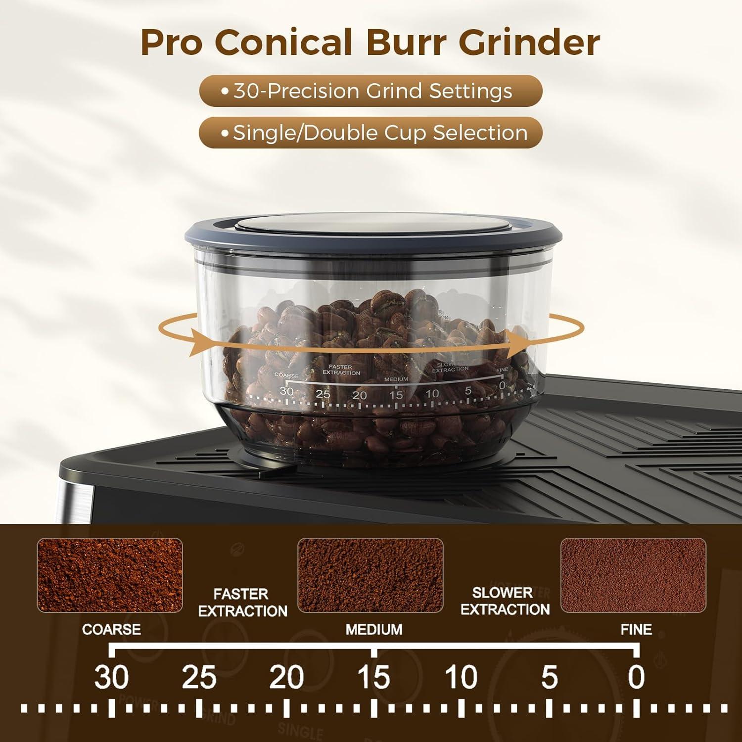 | 30 Grind Settings | Customizes coarseness for overall flavor and shot timing |