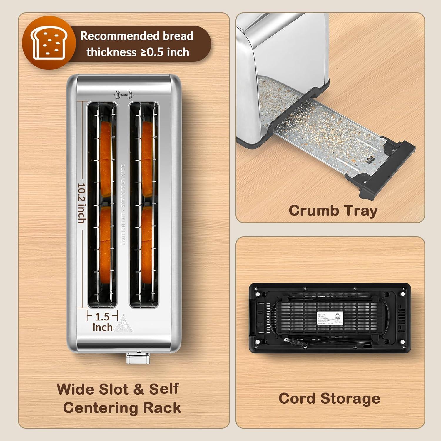 | Slot Size | Extra long and wide; ideal for bagels and thick breads |