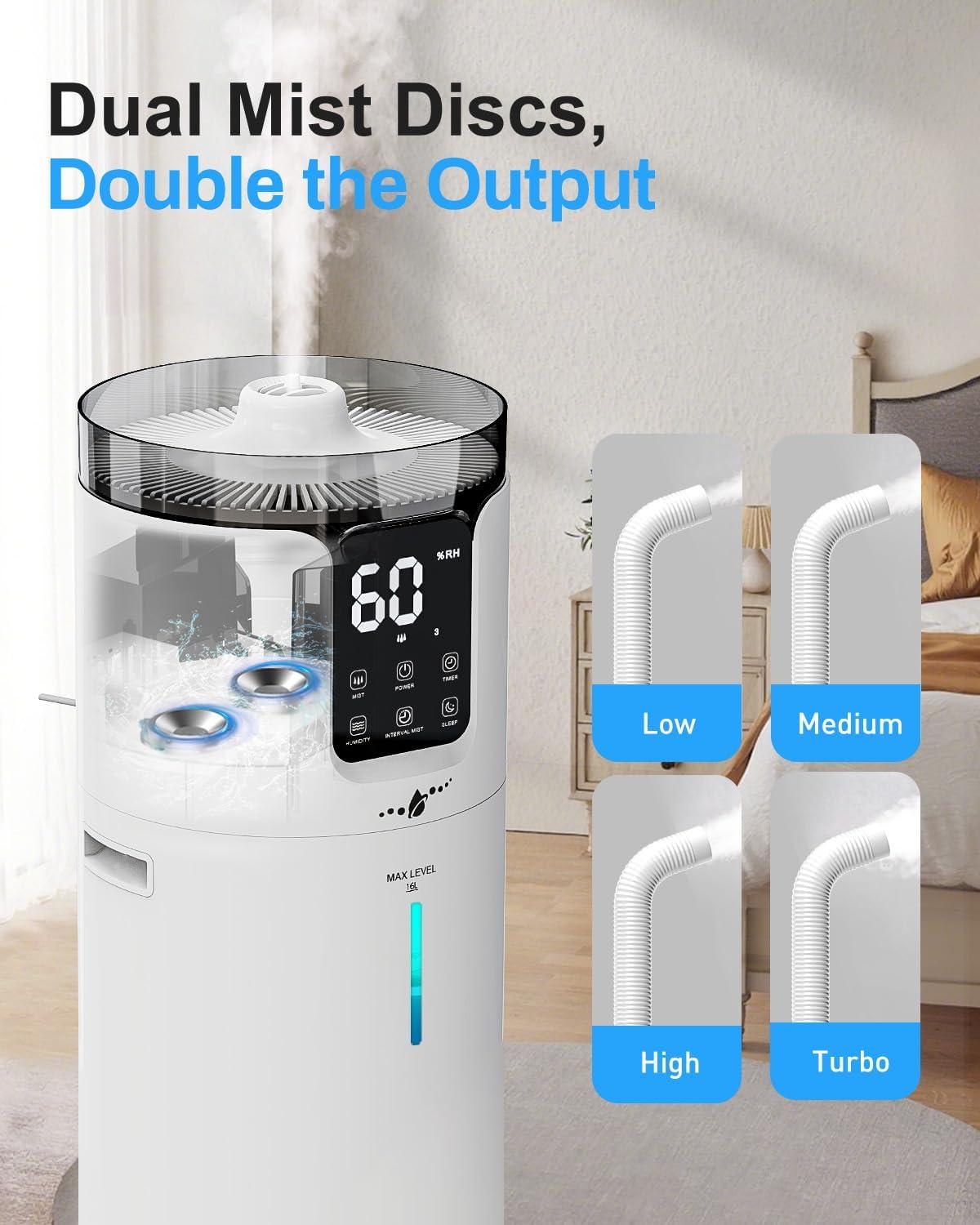 Mist Output levels Low, Medium,​ High, Turbo – Adjustable for room size and humidity needs