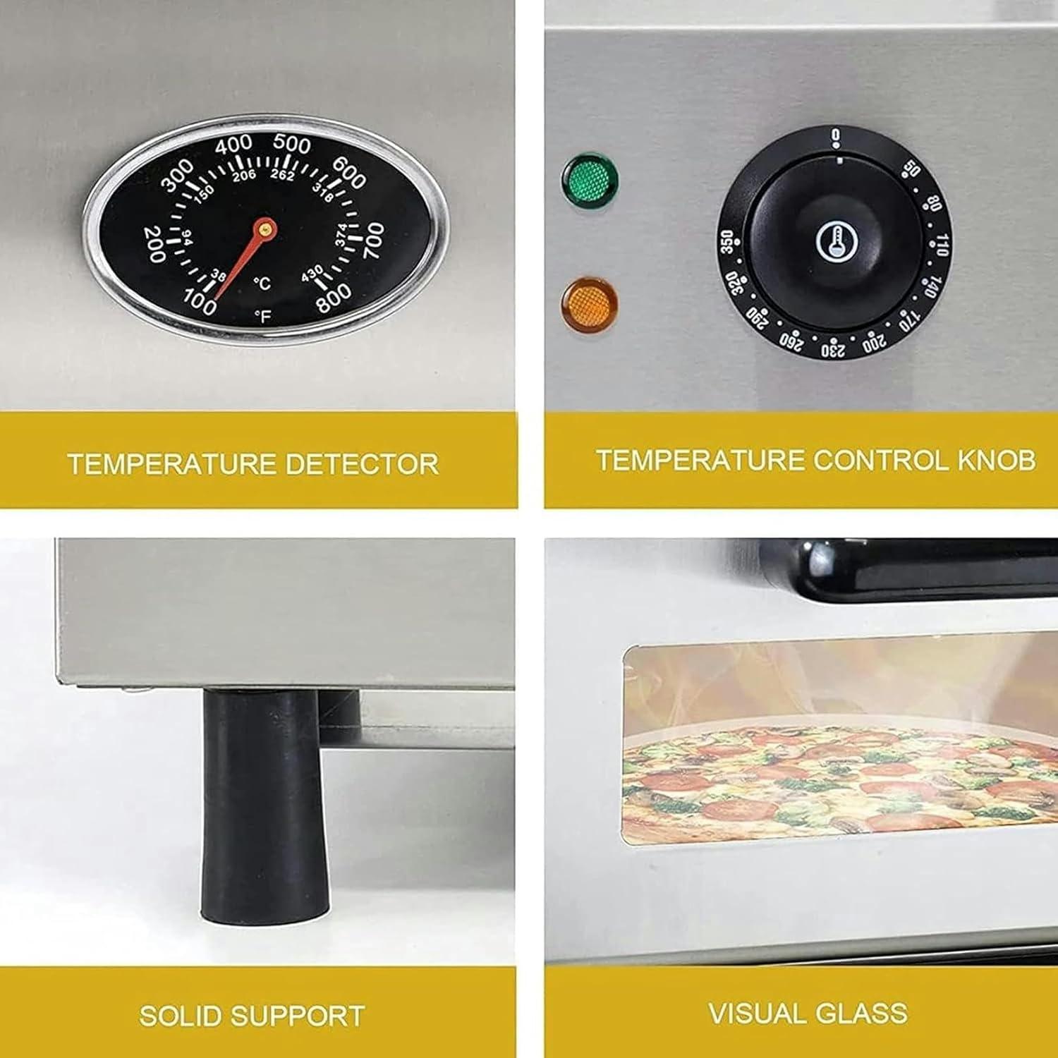 After thoroughly testing this oven, we found it excels in delivering consistent, restaurant-quality results thanks to its powerful 1800W heating system and dual-layer design. The stainless steel construction not only ensures durability but also meets rigorous hygiene standards, making it a reliable choice for both commercial kitchens and household use. Its adjustable temperature range from 50 to 350°C and the included 12-inch pizza stone guarantee flexibility, allowing you to prepare everything from crispy thin-crust pizzas to evenly baked pastries. The built-in observation window and internal light are thoughtful touches that enhance the user experience, giving full control without interrupting the cooking process.