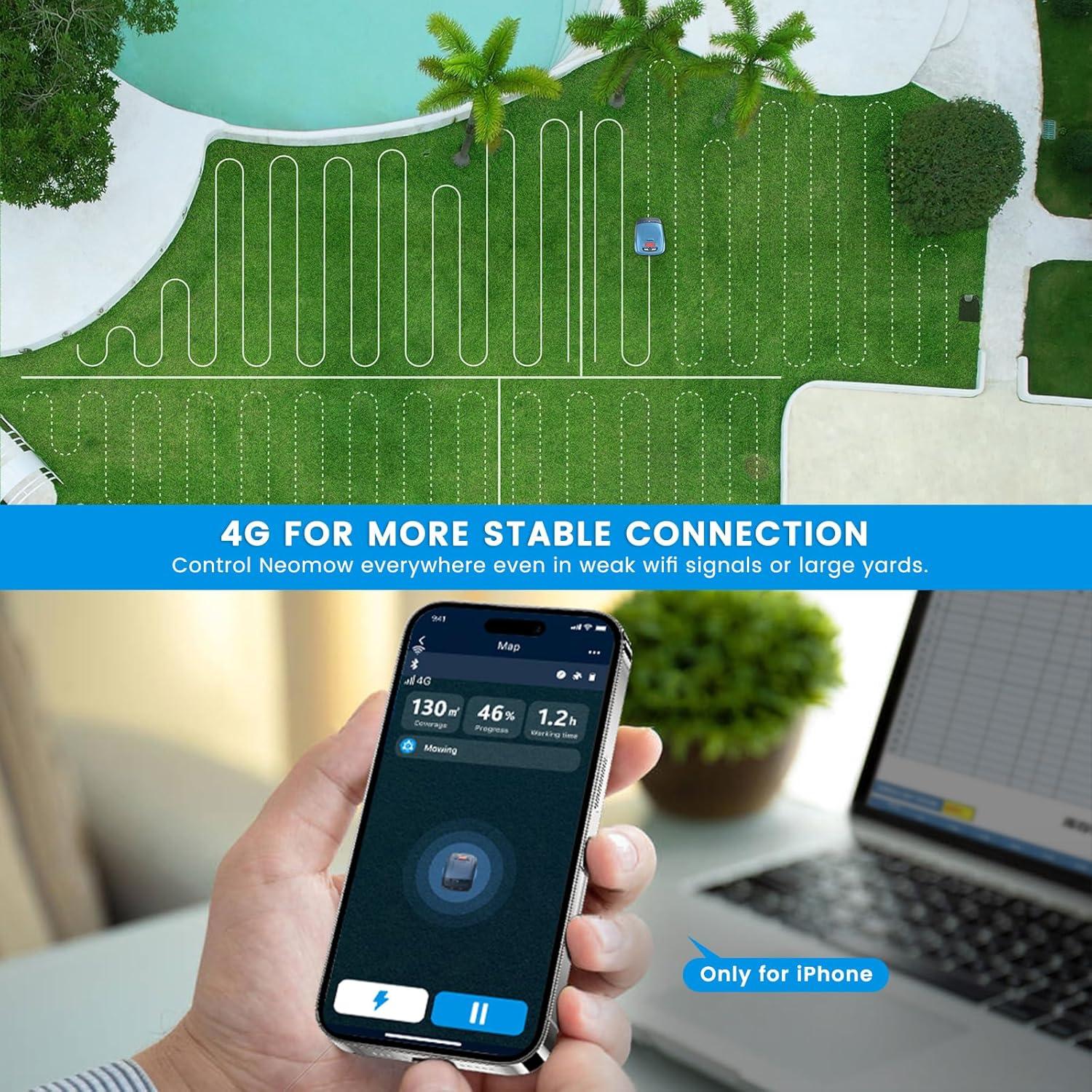 The integration of 4G, WiFi, and Bluetooth connectivity sets this robotic lawn mower apart in terms of remote accessibility and control. Primarily designed for iPhone users, the mower leverages a built-in 4G SIM card so you can manage your lawn care from virtually anywhere-eliminating the need to be within Bluetooth or WiFi range. This constant connection enables seamless updates on mowing status and immediate command execution through the dedicated app, making lawn maintenance adaptable to your busy lifestyle. We appreciated the convenience of adjusting mowing schedules, cutting heights, and operational modes remotely, which truly modernizes the traditional chore of lawn care.
