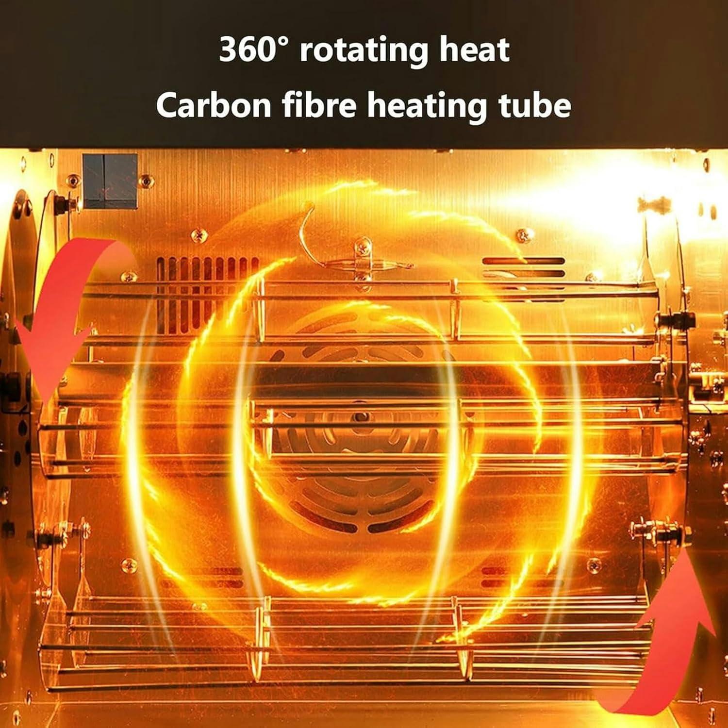 Designed to handle large quantities with ease, this oven accommodates up to 20 kg of food at once, making it ideal for family gatherings, parties, or small commercial use. The spacious interior allows for roasting a wide range of items-from sweet potatoes and vegetables to pizzas and meats. Its standout feature is the advanced 360° rotation system powered by fiber carbon heating tubes. This ensures consistent and even heat distribution, eliminating hot spots and delivering perfectly cooked results every time. Coupled with a robust stainless steel body, this appliance strikes a fine balance between durability and high performance.