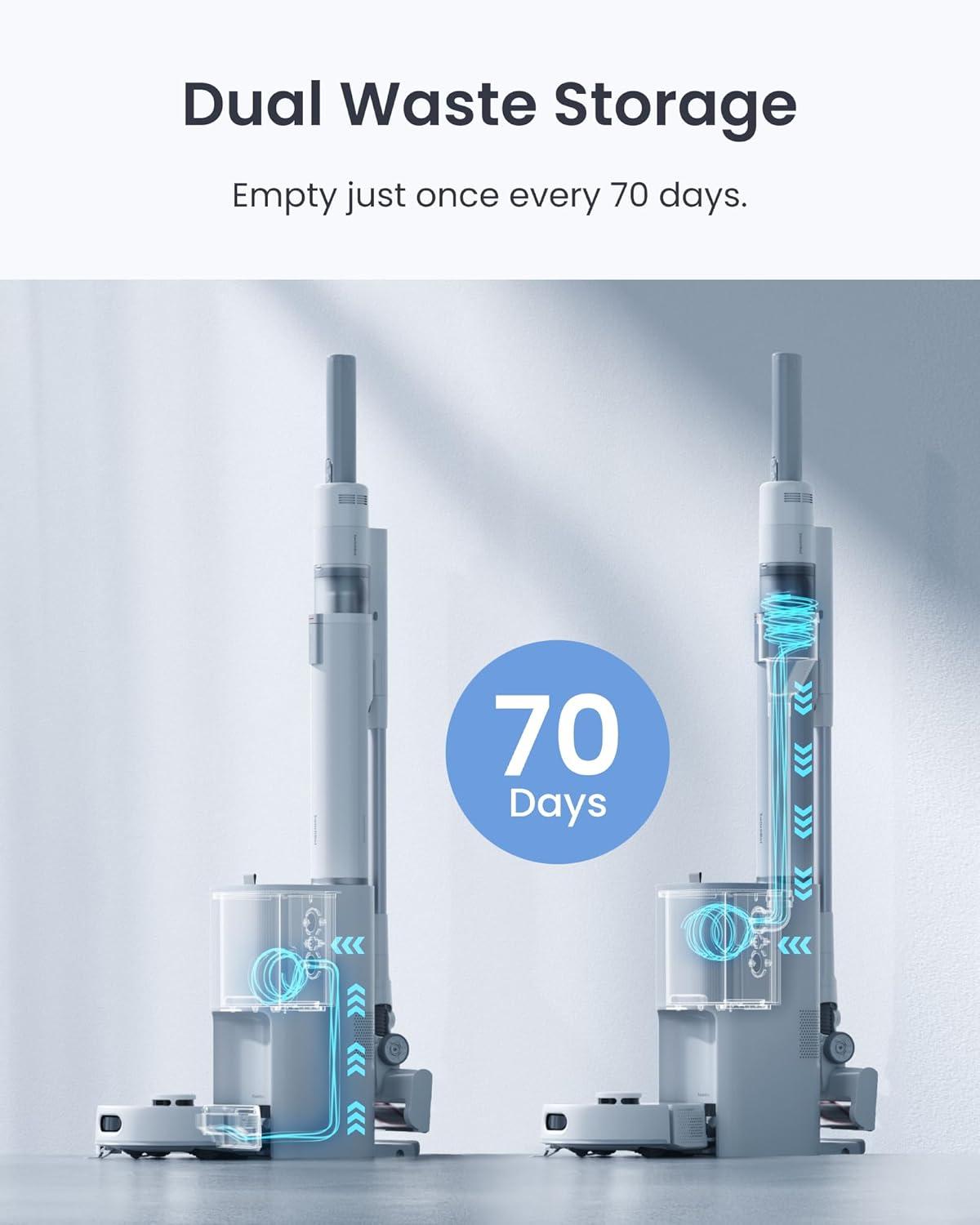 What truly stands out is the dual dust collection station that handles automatic emptying and charging for both devices seamlessly. this not only frees us from frequent maintenance but also keeps the living space clutter-free thanks to the ultra-compact footprint that’s no larger than an A4 sheet of paper.The FusionBase’s 3L dust bag capacity means less frequent emptying-about once every 70 days-making it a hands-off and highly convenient cleaning companion for busy households.