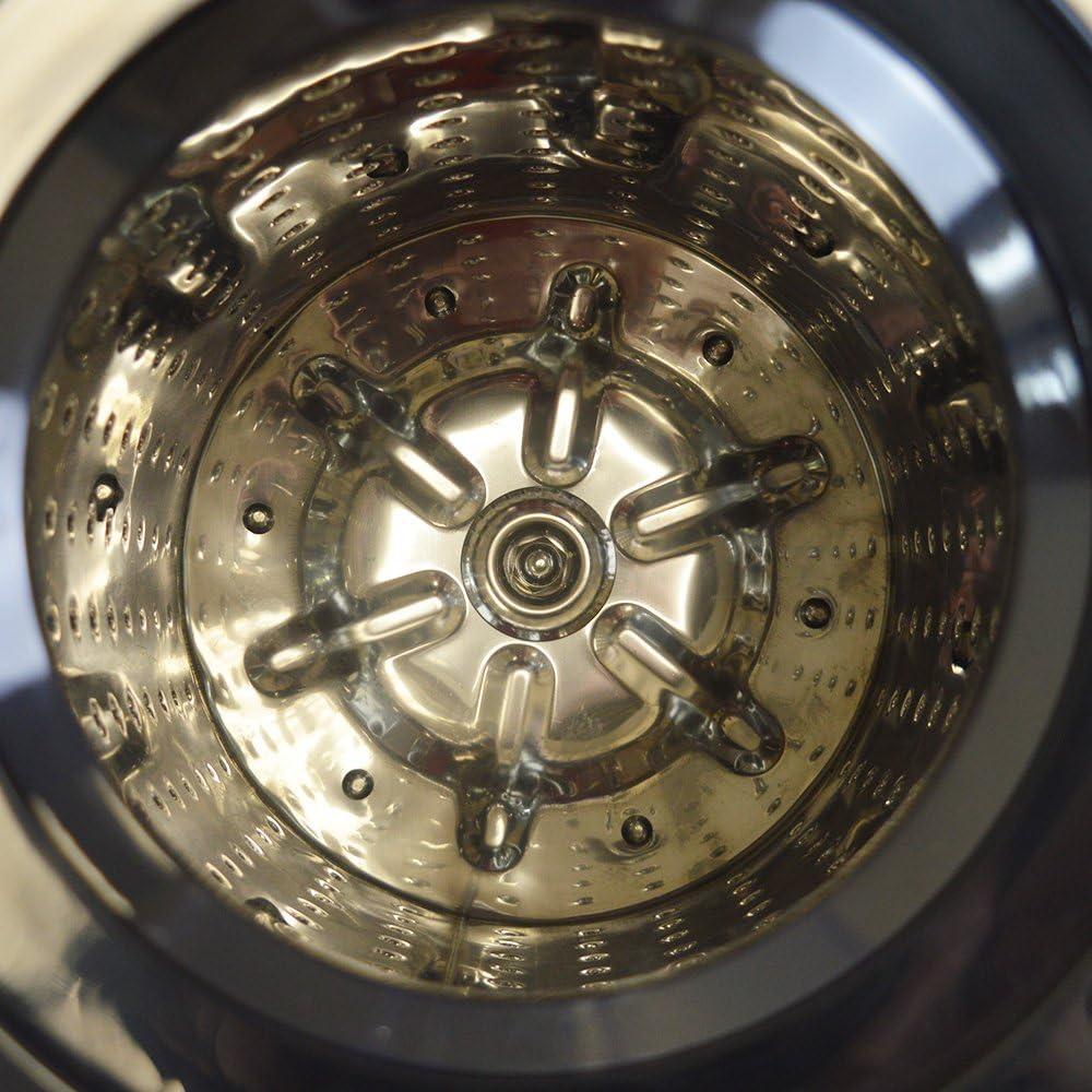 When you reach inside, the stainless-steel drum greets you with a cool, slightly reflective surface that catches light in a way that makes the perforations stand out. Running your hand along it,you notice a mostly smooth sweep interrupted by the tiny holes — they’re neatly punched and don’t snag,though the metal around each aperture has a faint edge you can feel if you press a fingertip into it. The drum’s finish is more satin than mirror; it shows faint water marks and fingerprints but also wipes clean without much scrubbing.As you lift or rotate the drum by hand during loading, it feels solid and compact rather than hollow, and there’s a subtle metallic echo when your palm taps the inner wall, a quick cue to its thickness and construction.