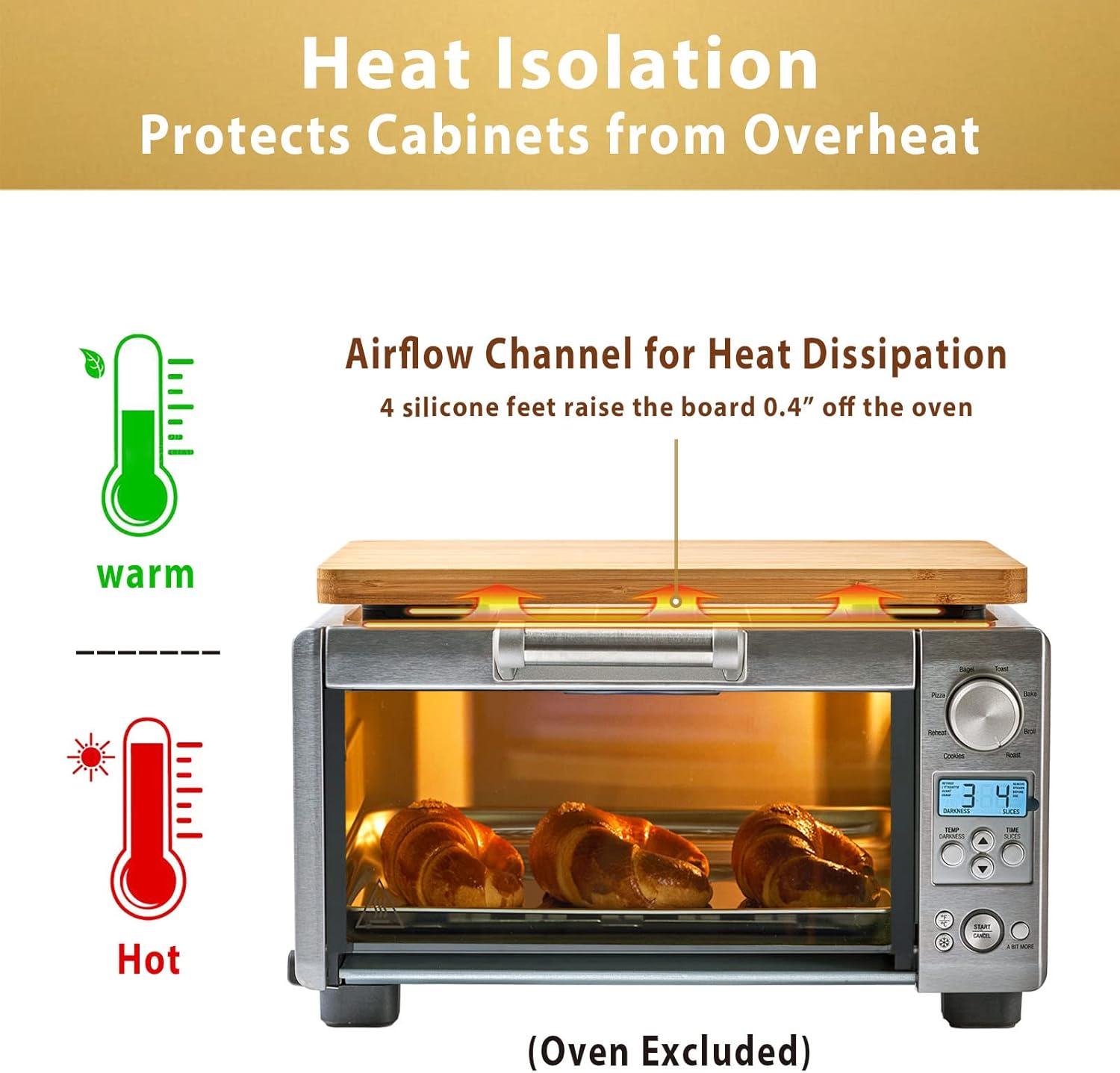 This accessory stands out as a smart and functional addition for anyone looking to maximize their countertop space while protecting their kitchen fixtures. Its precise fit and heat-resistant silicone feet transform the top of the toaster oven into a practical storage platform, allowing you to keep oven accessories like mitts, pans, or even trays within easy reach. Beyond its space-saving appeal, it effectively shields cabinets from heat damage-a common concern with compact ovens placed under overhead cupboards. The sturdy bamboo construction resists warping and cracking, making it reliable for daily use as both a cutting board and a resting surface for hot items fresh from the oven.