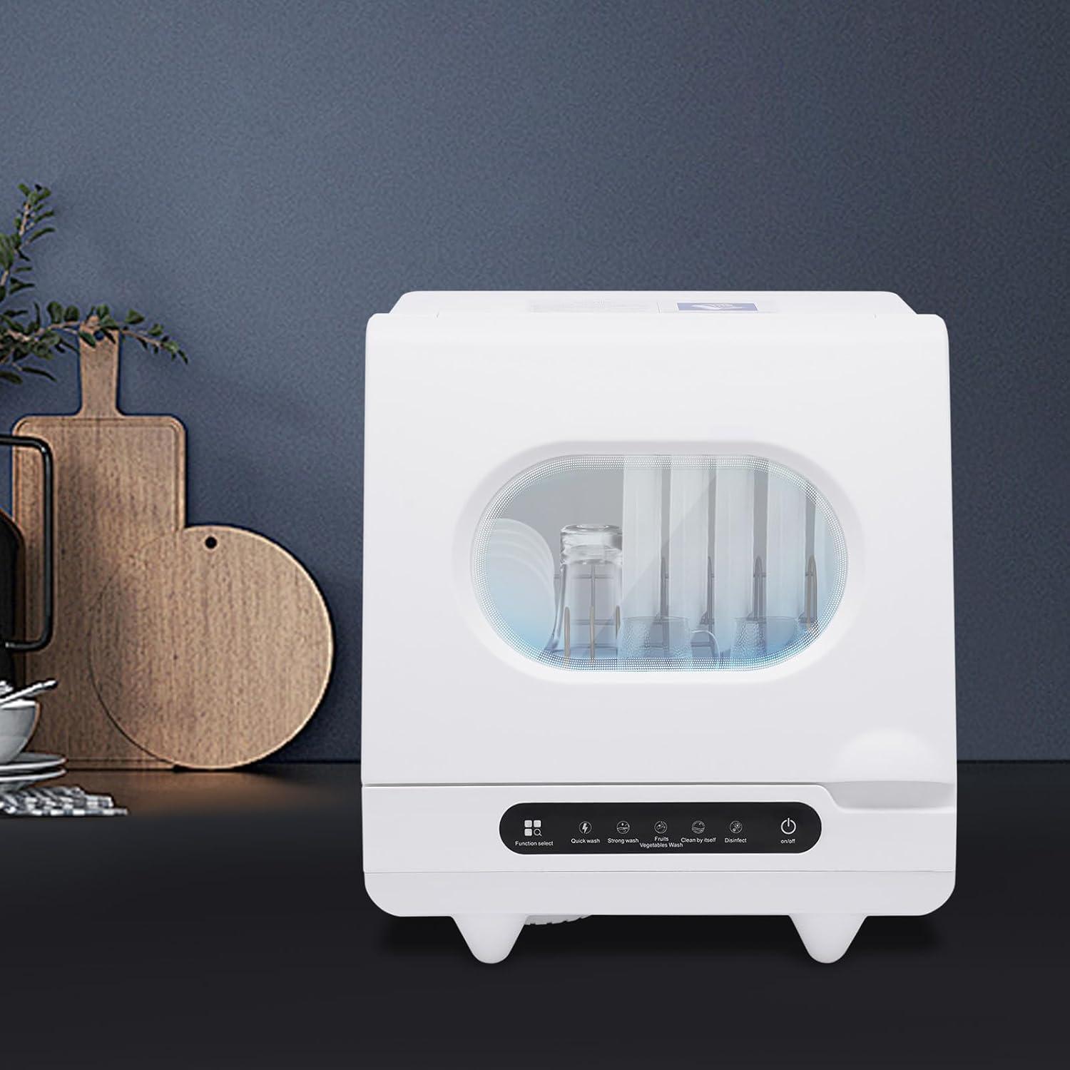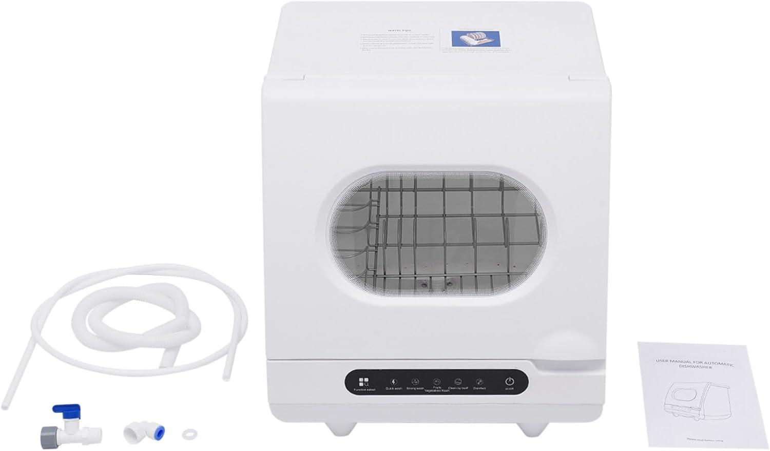 You lift it by the base and the unit has a reassuring, not-too-light heft; the sprayed white plastic feels smooth with a faint texture under your fingers. The lid opens with a soft magnetic click and the clear window catches a strip of kitchen light, showing the interior without shouting for attention. The unit, sold simply as the Portable Tabletop Dishwasher, reads as compact and deliberate — it’s proportions tidy, edges clean, and the little control display sits low-key on the front. Switch it on and a quiet, conversational hum begins; the first moments are all about fit and presence: how it looks, feels, and quietly inhabits the counter.