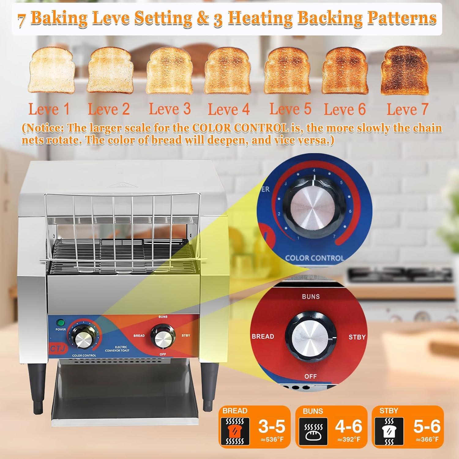 ⚙️ Versatile heat settings – 7 temperature levels plus 3 toasting modes for perfect browning on bread, bagels, buns, and croissants. 🎛️ Temperature control and chain speed can feel a bit manual; fine-tuning the COLOR CONTROL knob takes a trial-and-error approach.