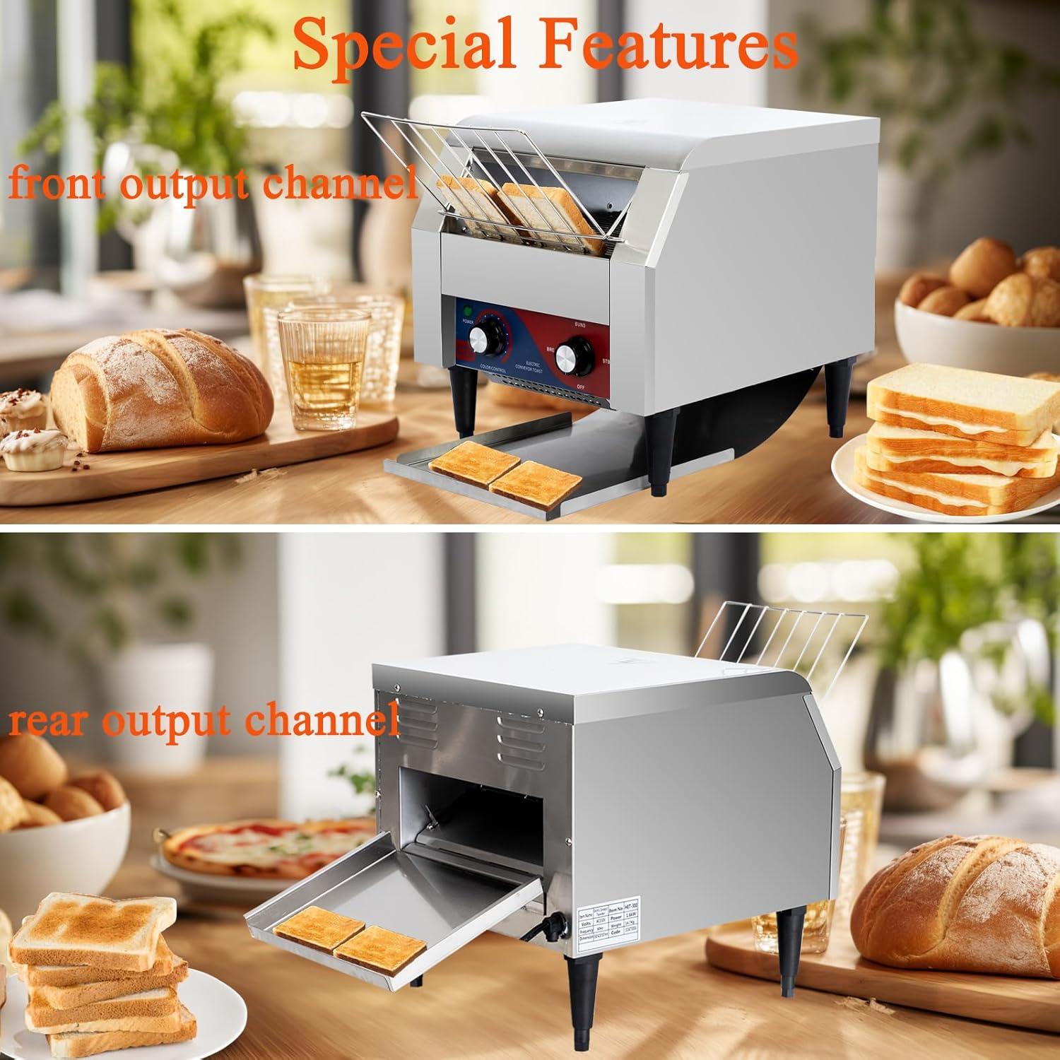 🔄 Dual exit doors for toast retrieval – choose front or back depending on your kitchen layout and workflow. 🔗 Some users reported confusion about chain movement direction; initial manual labor needed to fully understand operation.