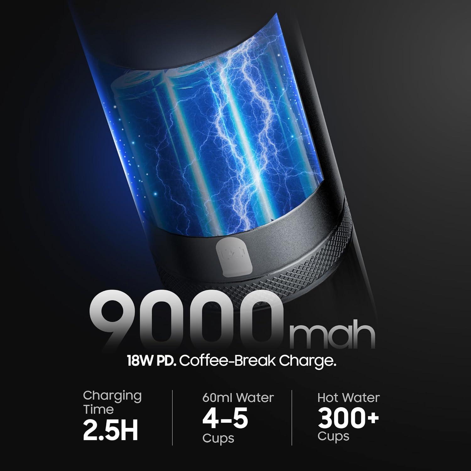 | Self-Heating with 9000mAh Battery | Hot espresso anywhere, quick recharge |