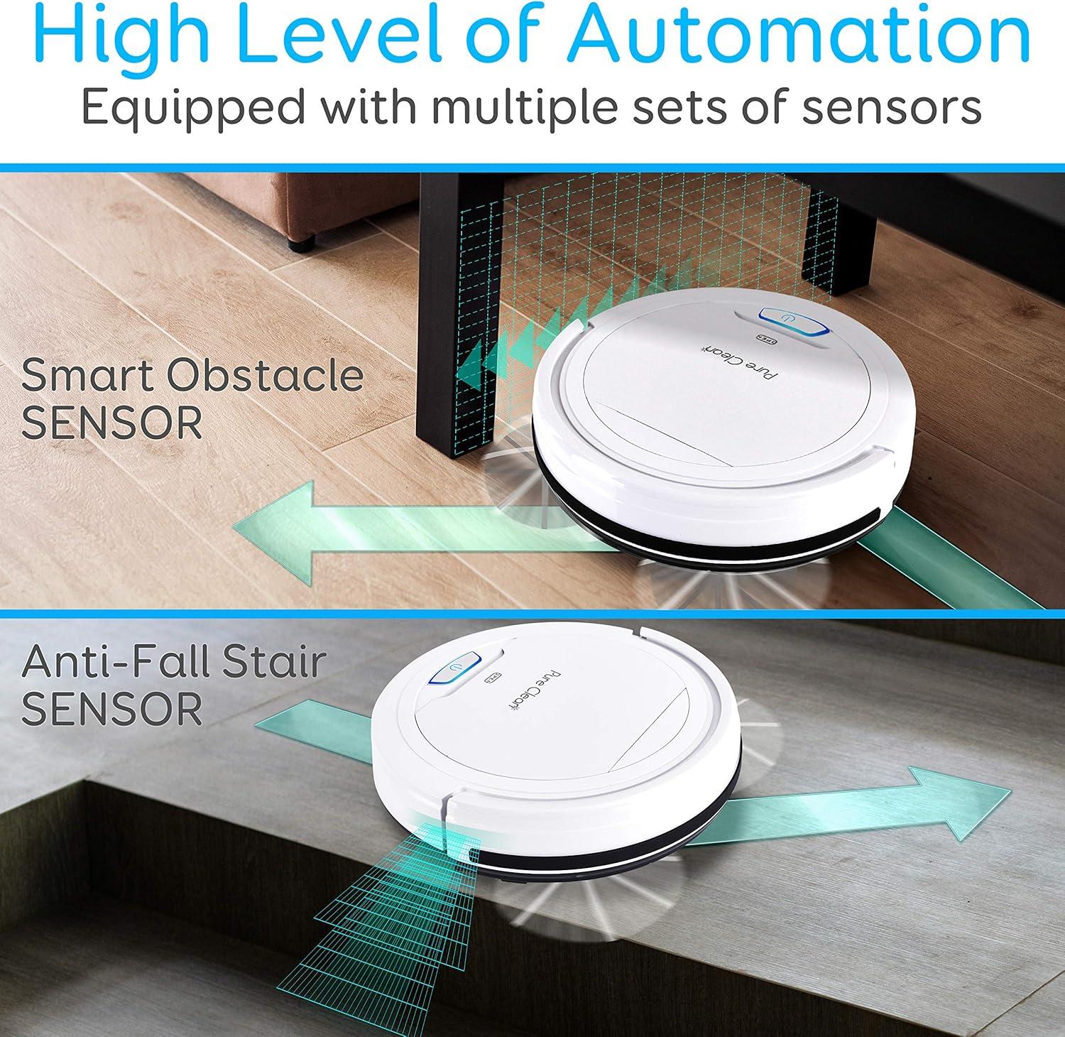 Along with stairs, its slim 2.9″ low profile design helps it glide effortlessly beneath furniture like couches and beds, reaching areas we usually struggle to clean. Coupled with dual rotating side brushes,it extends its reach to corners and edges on both hardwood and carpet surfaces. The combination of smart sensors and clever engineering means less hassle and more time enjoying a spotless home.