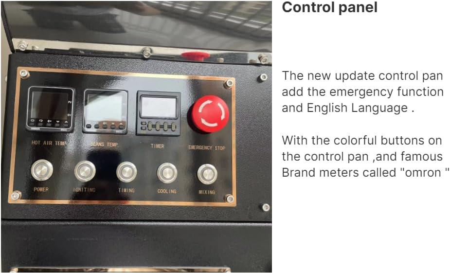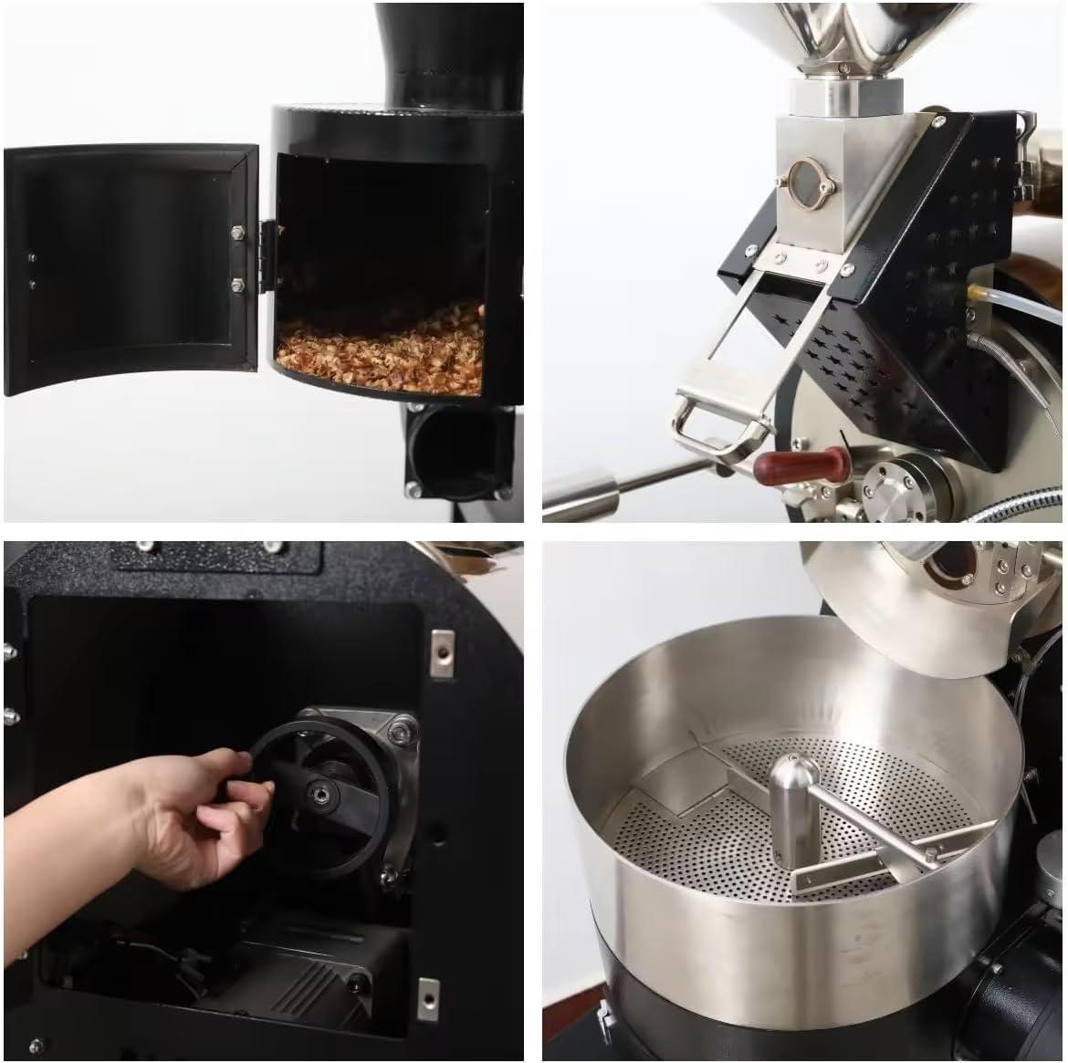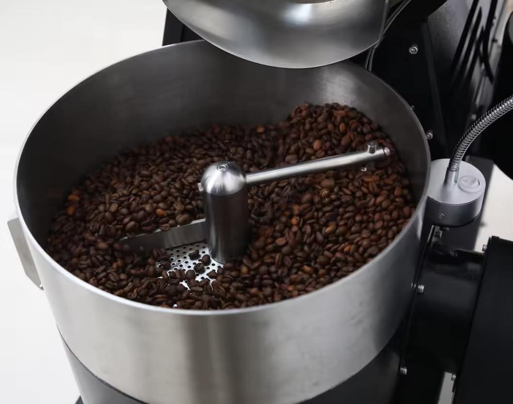 When you stand at the machine and begin a roast, much of what you register first is tactile. The control knobs and switches offer small, deliberate resistance so you can make incremental adjustments without fussing; a quick twist changes airflow or flame in a way you can feel through the fingertip. Sliding the sampler spoon into the drum or through the burner window produces a brief, warm snap against your hand and a tiny change in the vibration you sense through the housing. The drum’s rotation itself is a steady, almost hypnotic motion you sense more than see: a low, rhythmic thrum underfoot and slight, regular pulses against the frame. Buttons for the real-time displays click distinctly when pressed; the cooling tray and mixing control engage with a different, softer feedback when you flip them on. Small habitual actions crop up — you pause to re-centre a scoop, you rest a hand on the stainless surface to steady yourself — the machine becomes a set of discrete tactile cues you learn to read in mid-roast.